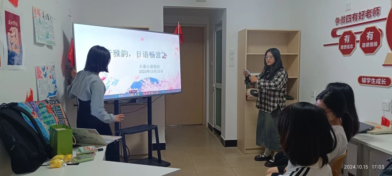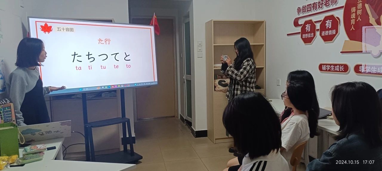 日语口语协会在2024年10月15日的至诚学生社区11号楼开展了主题为“和音雅韵,日语畅言”的活动,对日语五十音图的讲解、基础日常会话的阐释以及模拟日常对话的实践练习。社团成员展现出极高的参与热情,勇于进行语言实践,掌握了应对日常情境的问答技巧,并对日本文化及其与其他国家文化的差异,例如鞠躬礼节,有了更深入的了解。此次,社团进社区活动圆满结束。