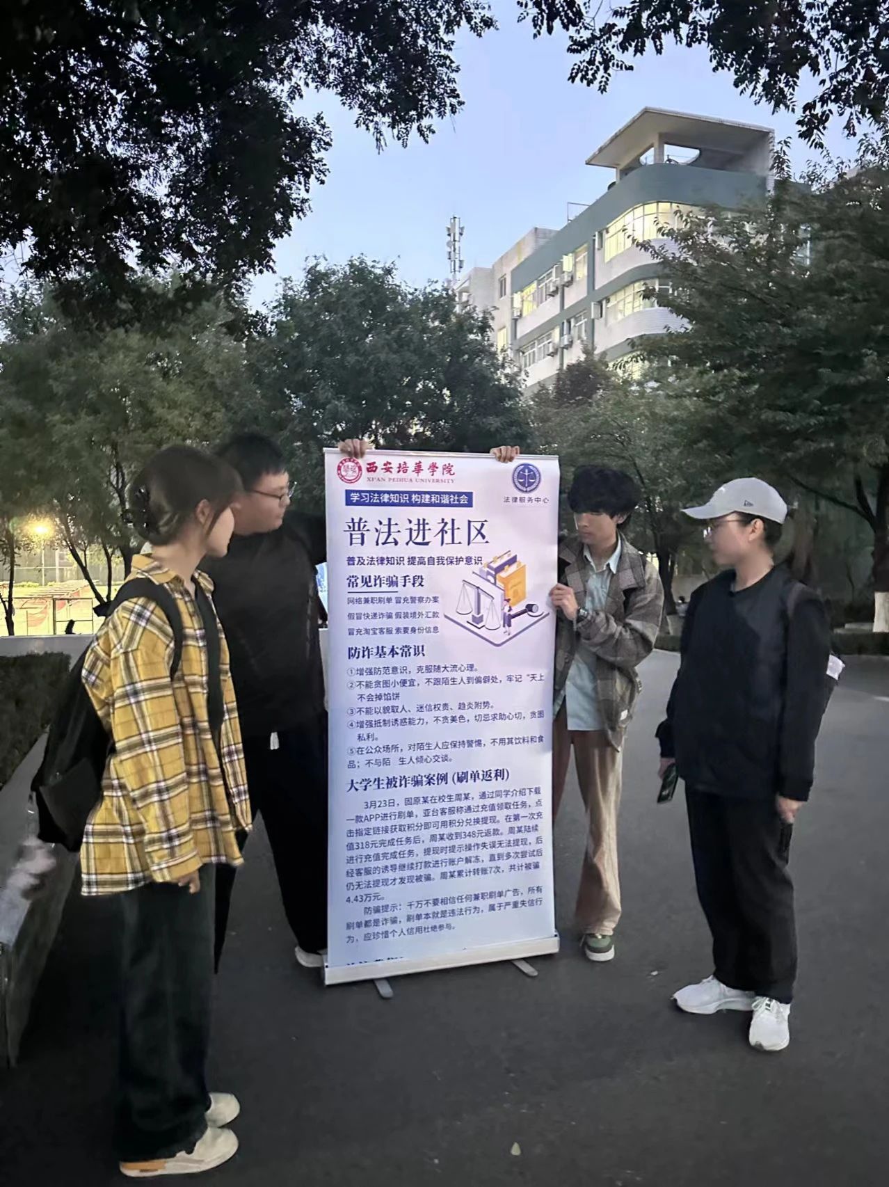随着我国法治建设的不断推进,校园普法作为新时代法制教育的重要组成部分,对于培养具有法治意识的新一代公民至关重要。为此,我校积极响应国家号召,法律服务中心于10月11日下午14:00在笃行学生社区10号楼由法律服务中心社团组织了一场以“普及法律知识 构建法治社会”为主题的宣传活动。本次活动旨在通过创新形式向广大师生普及基本法律常识,提高大家对法律法规的认识和理解,从而促进整个校园乃至更广泛社区内形成良好的法治氛围。