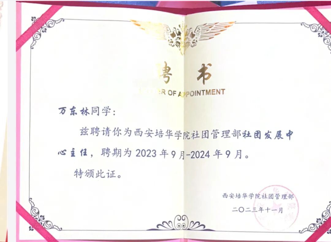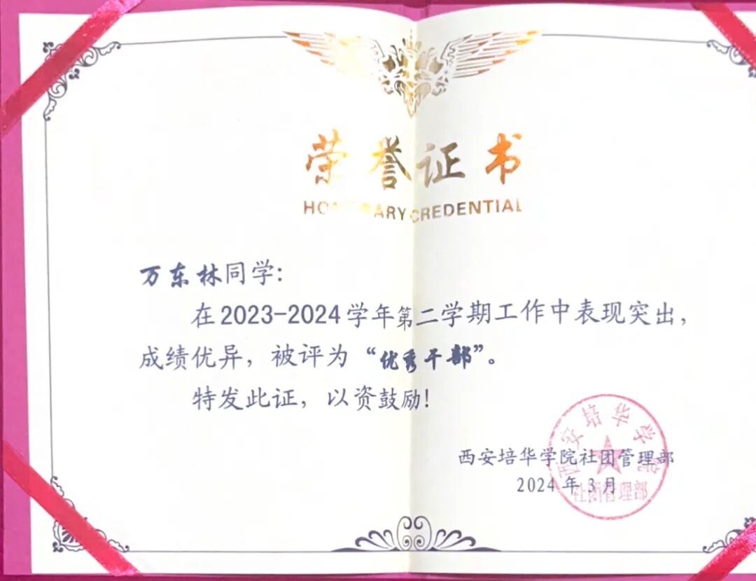 终于轮到我们万东林学长了,在我心里,他就像社团里的“定海神针”。日常社团事务里,他真的是超级靠谱。每次活动前,他都会提前到场,仔细检查设备、布置场地,不放过任何一个小细节,让我们活动开展得特别顺利。要是遇到突发状况,比如设备突然出问题,他也能迅速想出解决办法,沉着冷静的样子让人感到安心。