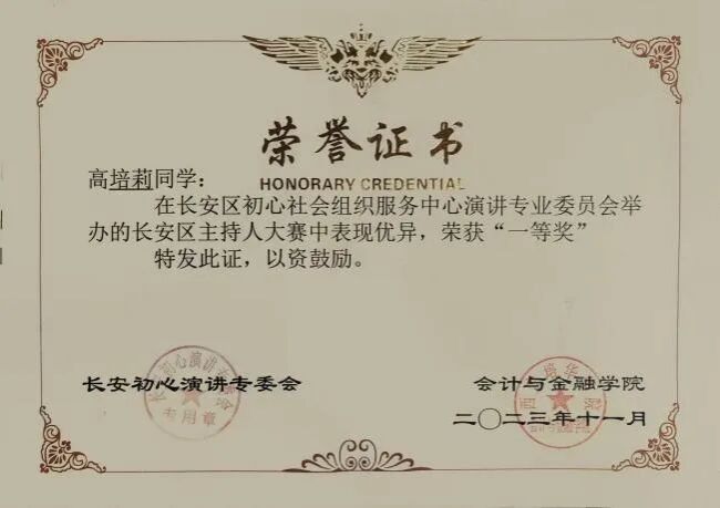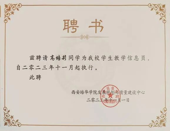 首先,很荣幸培莉让我写这个印象。怎么说呢,我所认识的培莉刚开始给人一种不太好相处的样子,总是很严肃,后面慢慢接触后发现原来是一个很宝藏的女孩子,她是我们班的学委,看起来小小的一个,却总是忙忙碌碌的为每位老师和每个同学服务,很有责任心,不管在生活还是学习上都很积极向上,并且我发现她也是个很细心的小女生,希望漂亮有趣的她,一直能开开心心,平平安安,永远明媚,永远做自己。相信她带着自己赤诚和社团都会越来越好!!!