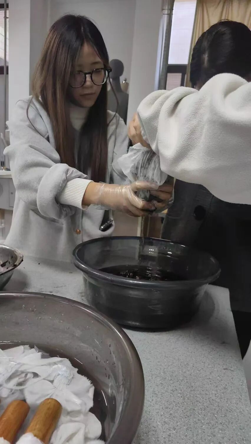 Fashion Design社团于2024年11月21日在汇智楼6515开展了以“创意无限,时尚之源”为题的社区活动。活动现场,扎染非遗文化,一幅幅色彩斑斓、图案独特的扎染作品,展现出这一传统技艺的独特韵味,让大家深刻领略到扎染深厚的文化底蕴和艺术魅力。而刺绣,在大家耐心指导下,穿针引线,用一针一线在织物上勾勒出自己心中的美好图案。