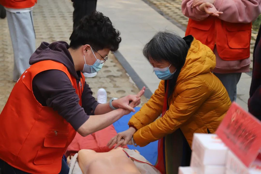 红小十向社区居民详细地介绍心肺复苏的流程,并在现场为社区居民做了示范,让大家对心肺复苏更加了解。此外,还普及了海姆立克急救法在呼吸道被食物以及异物堵塞时的作用,提高了居民对应对突发情况的能力。