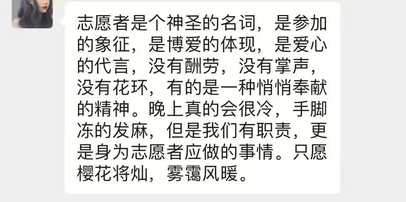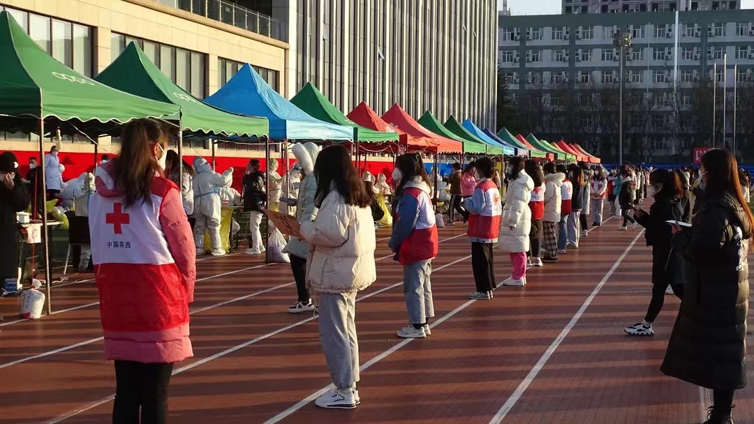 尽管当下疫情形势严峻,封闭管控升级,红十字会的志愿者们仍然坚守岗位,维护检测队伍秩序并协助医护人员完成核酸检测充分发扬并传承“奉献、友爱、互助、进步”的志愿者精神。