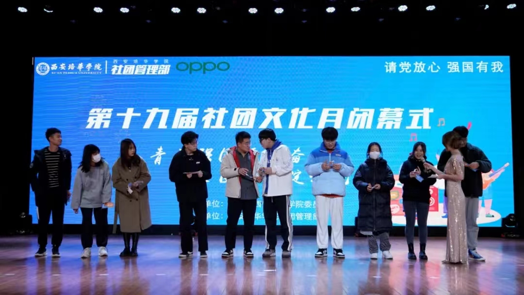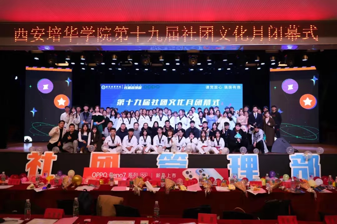 以“青春强国砥砺奋进,社团文化绽放光彩”为主题的西安培华学院第十九届社团文化月闭幕式在2021年12月11日于大学生活动中心圆满落下帷幕。在本次社团文化月的活动中,各个社团充分展示自身风采,用激情的旋律跃动青春。