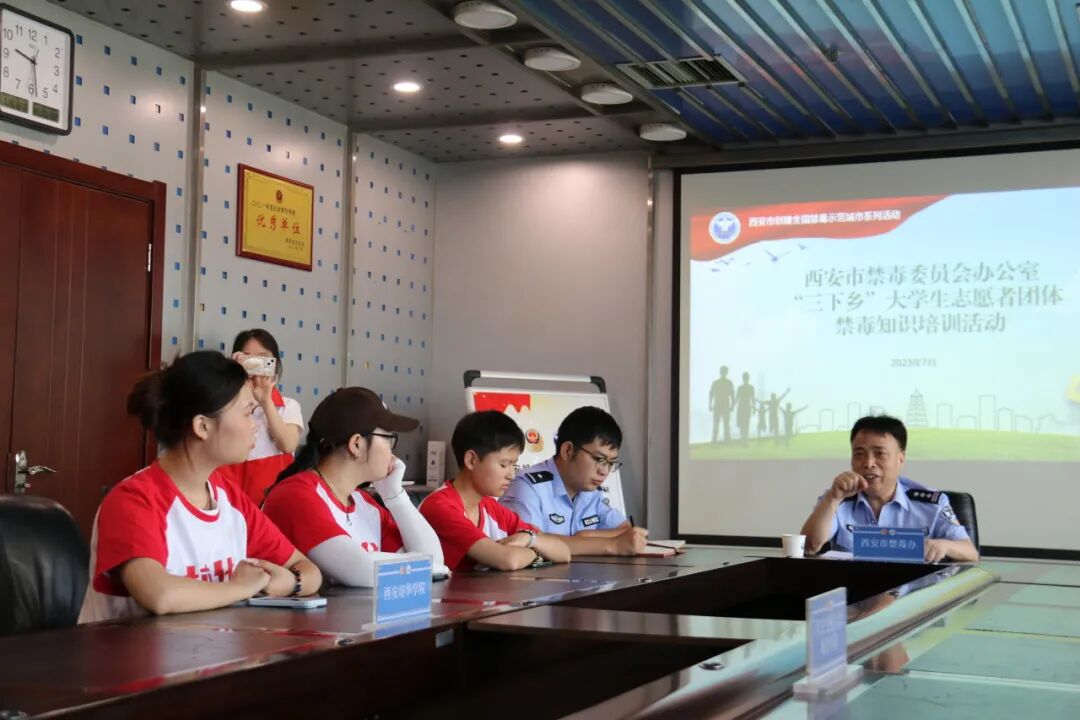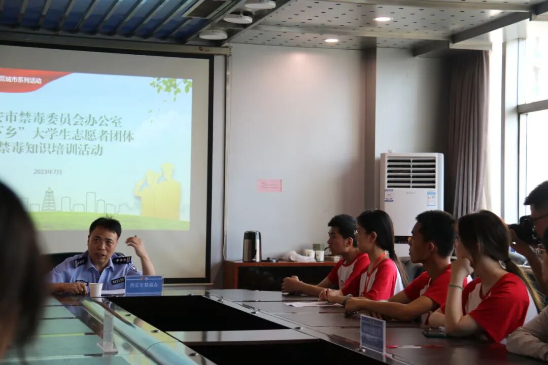 为深入学习宣传习近平法治思想,认真贯彻落实习近平总书记关于禁毒和法治教育工作的系列重要指示批示精神,同时为西安培华学院2023年暑期”三下乡”禁毒防艾社会实践活动成功开展,西安培华学院暑期三下乡禁毒防艾宣讲队在2023年7月19日来到西安市禁毒办、西安市公安局长安分局禁毒大队、西安市长安分局禁毒实践基地进行学习培训。