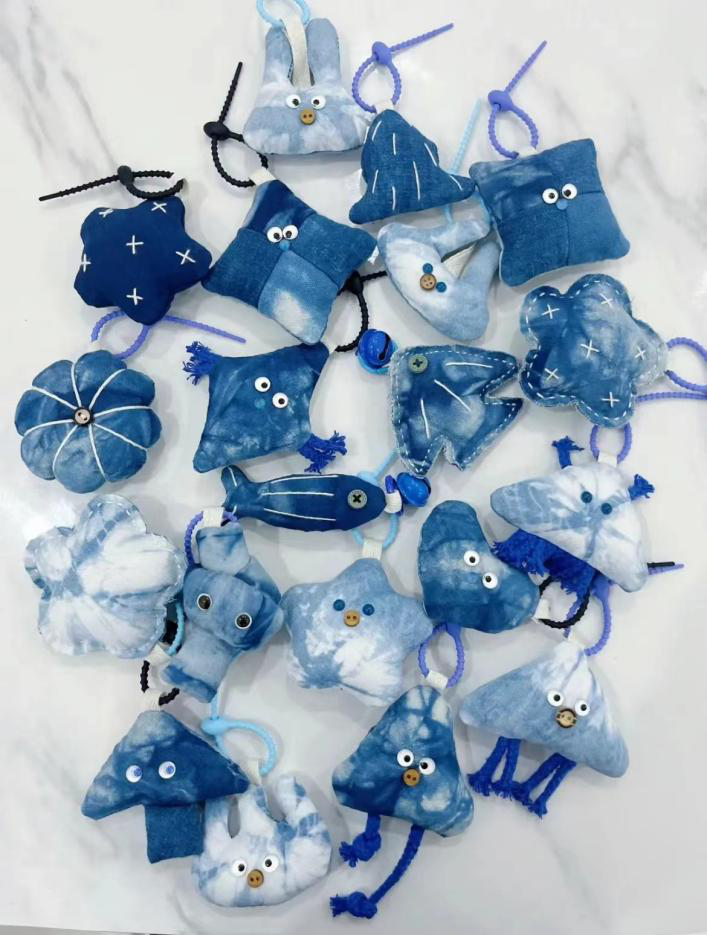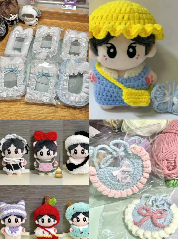 有手工制作的发圈、卡砖、毛绒娃娃、手作卡套等