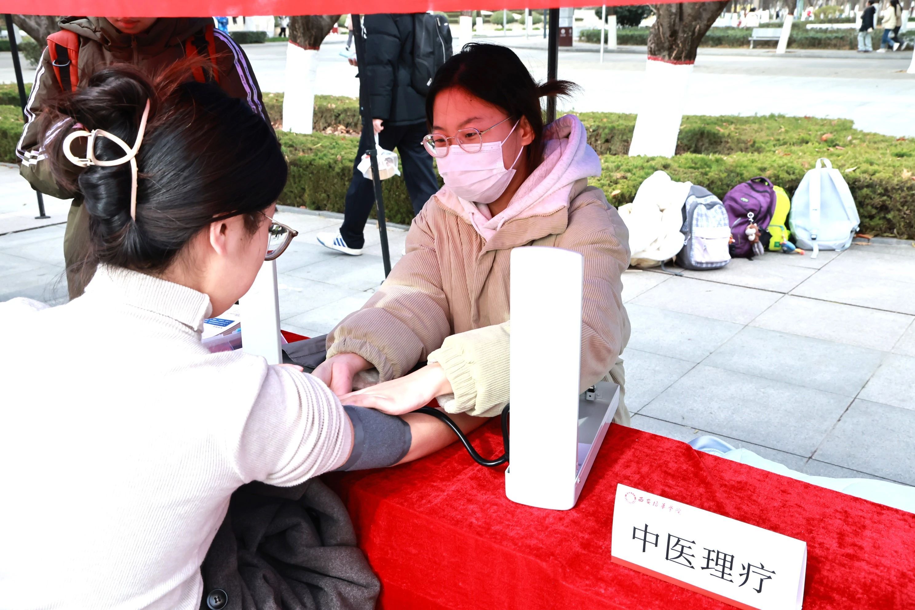 医学院展示了在校内积极开展义诊——血压测量、推拿、艾灸、刮痧理疗等,已形成医学院志愿服务品牌项目。