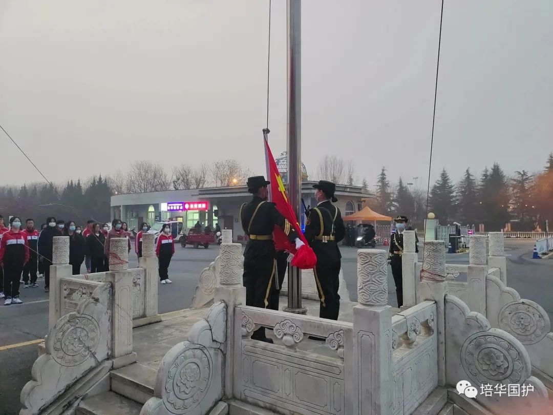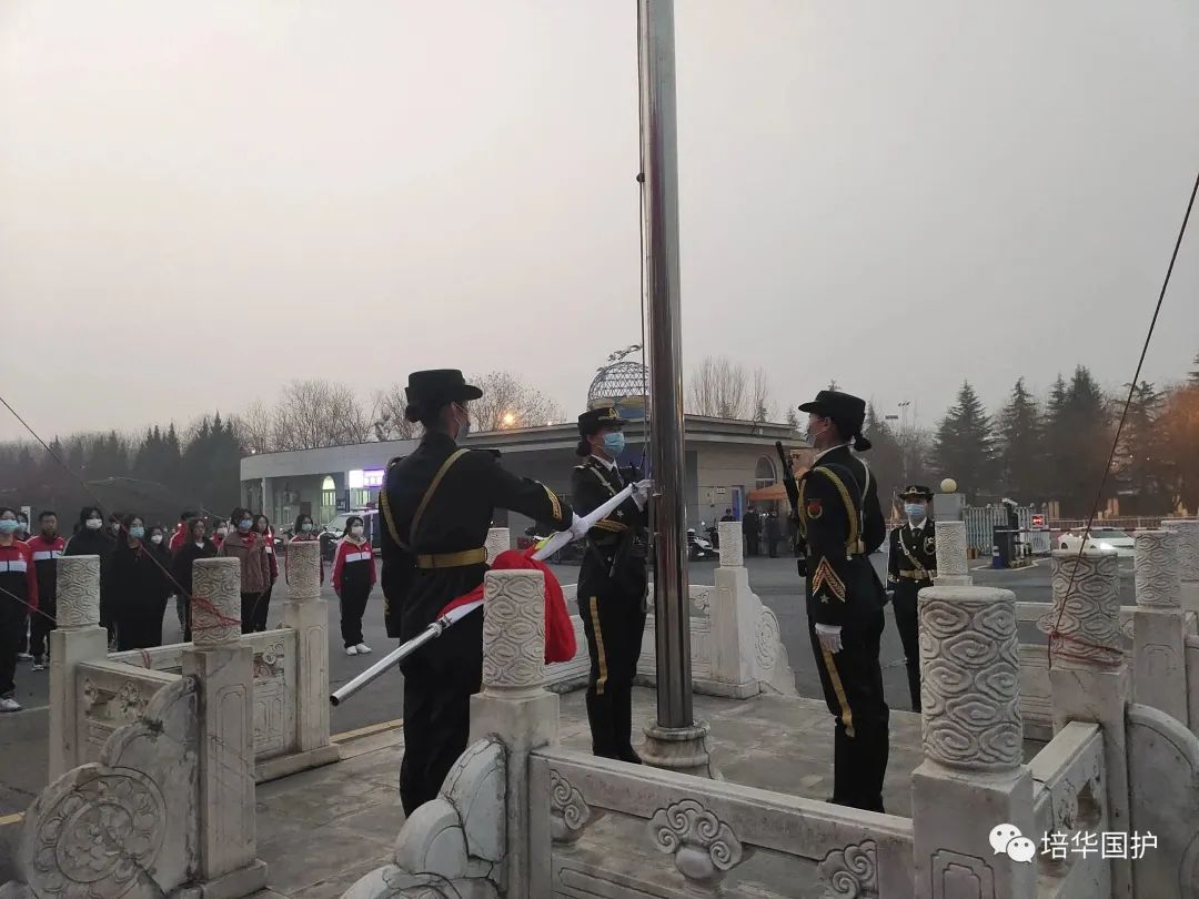 当国歌奏响,全体成员肃立,向国旗敬礼,看着冉冉升起的国旗,好似我们的希望也在飞扬。国护队员们神采奕奕,不忘初心,砥砺前行,齐赋这青春,尽绽风华。