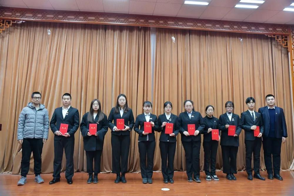 ▲党委宣传部融媒体中心综合主管吕晓东、校团委干事刘子阳为聘任干事颁发聘书