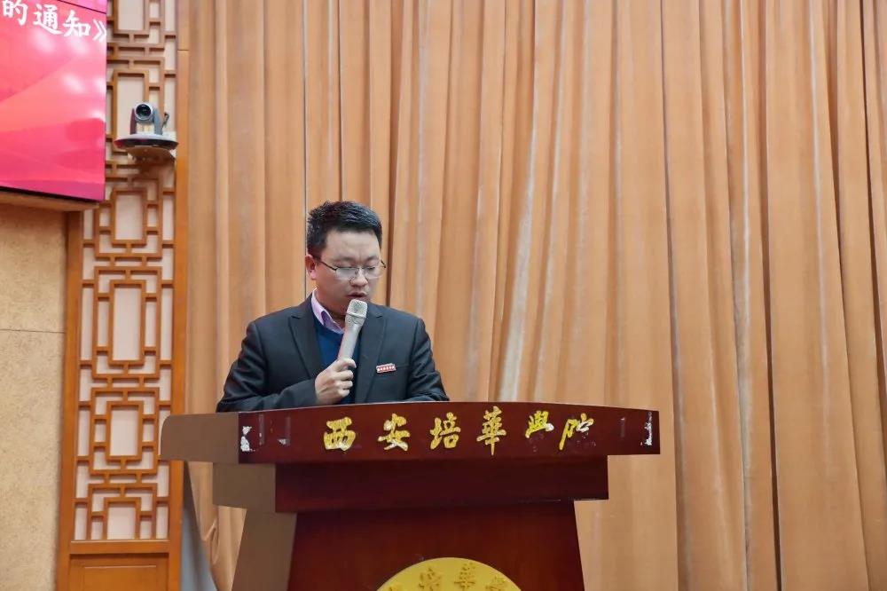 ▲校团委副书记屈先锋老师宣读《关于成立校团委培小青新媒体工作室的通知》