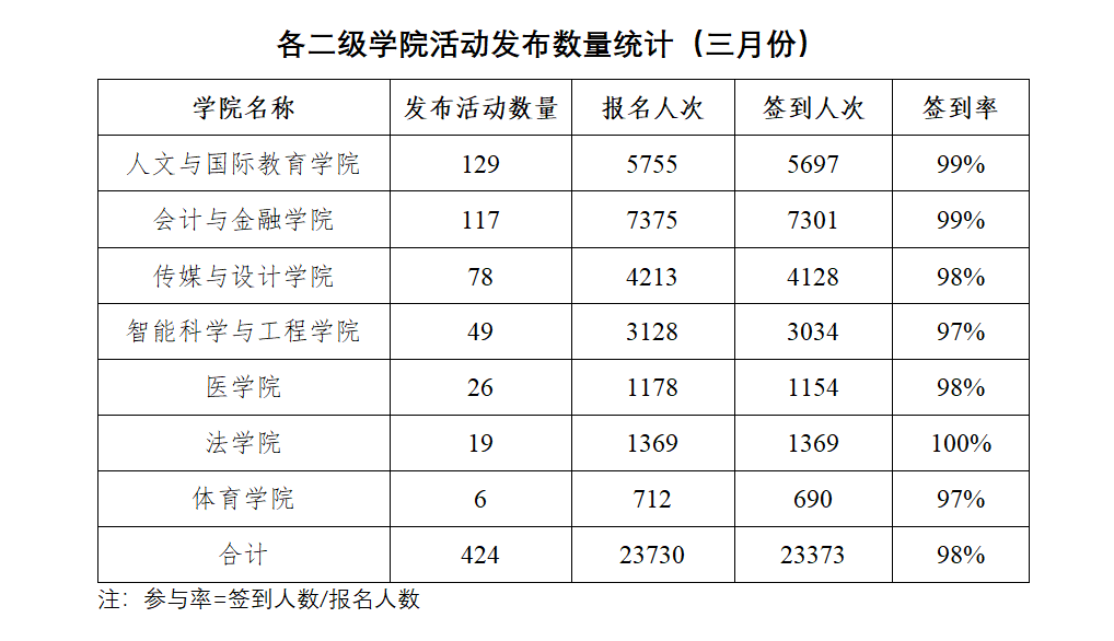 为有效落实第二课堂活动,西安培华学院以校园文化为抓手,“大学生成长平台(PU口袋校园)”为载体,通过创新实践,围绕我校应用型人才的培养目标,提升学生“八大能力”,充分发挥实践育人、文化育人,优化校风学风,引领社会风尚,有效发挥第二课堂的育人实效。结合本校情况,更新2024年三月份第二课堂成绩单大数据!