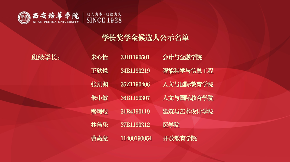 以上44名学生为本次专项奖学金推荐候选人,(此公示顺序不分先后),如有异议,请向学校学生工作指导委员会实名反映。公示时间为:2022年5月11-17日。