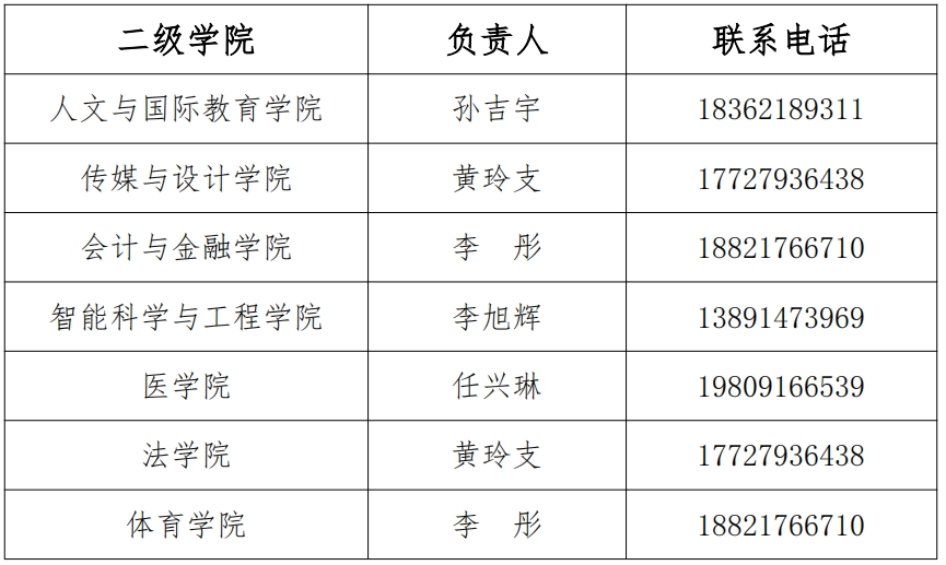 团工部对接各二级学院负责人及联系方式
