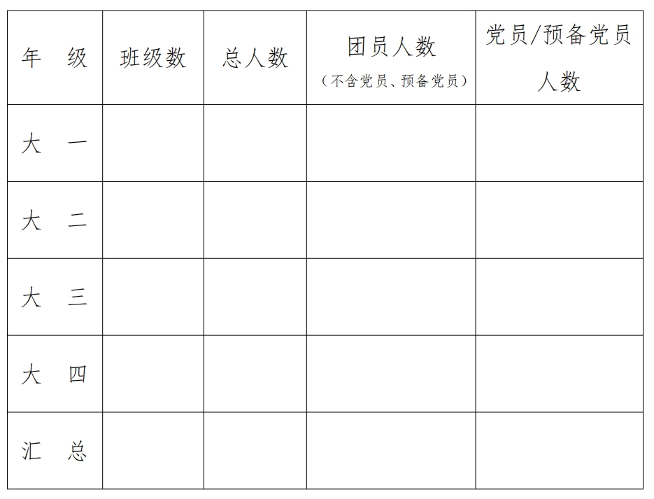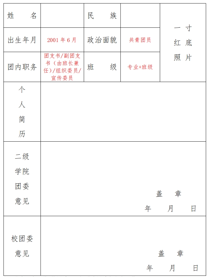 注:此表一式三份(校团委、二级学院团委、团总支各一份)
