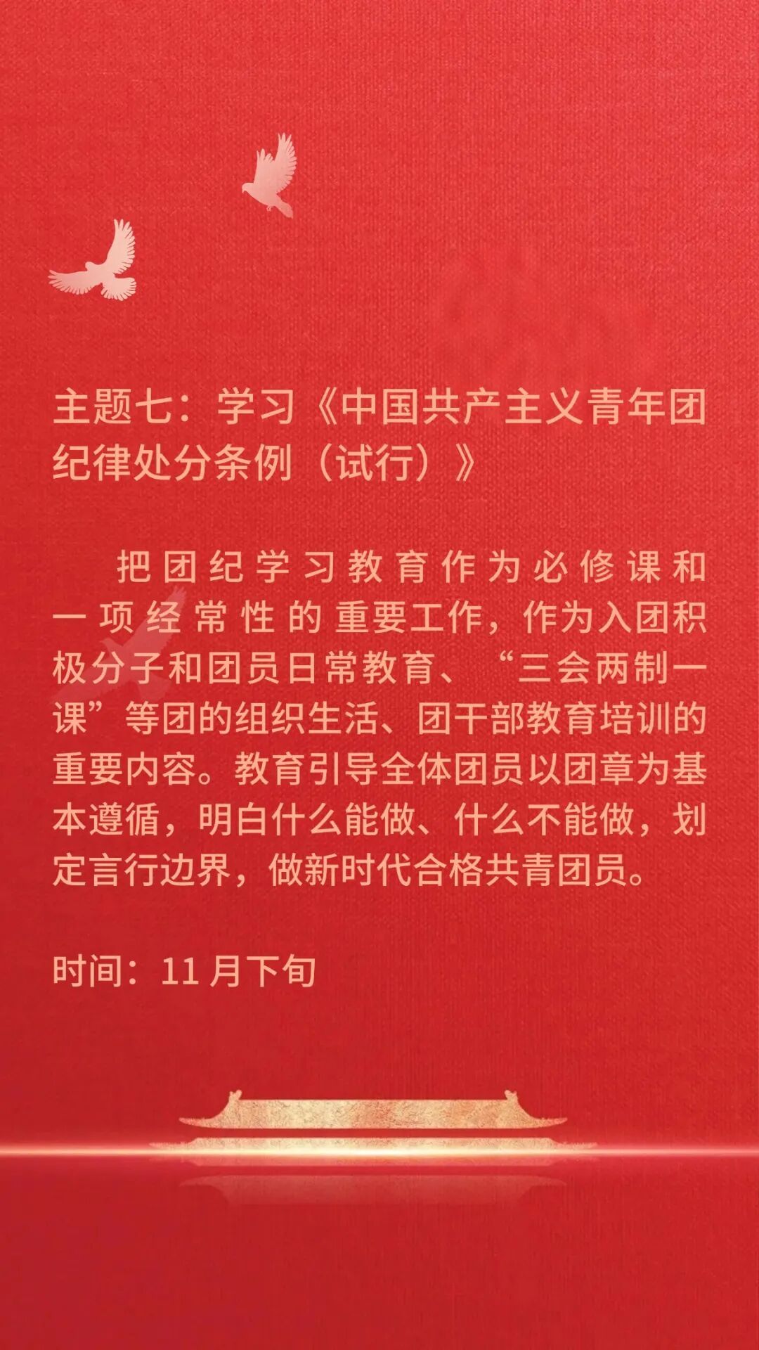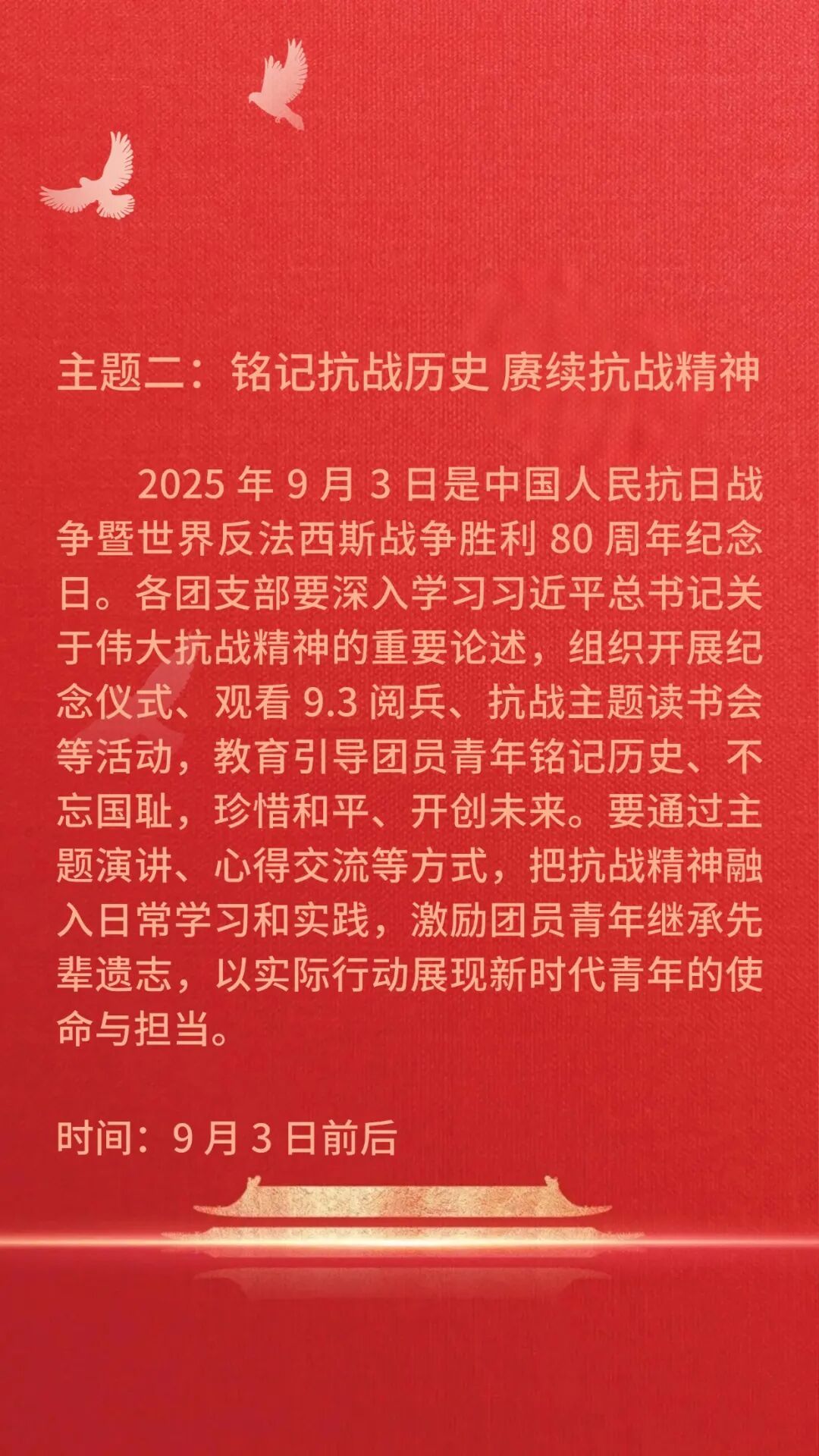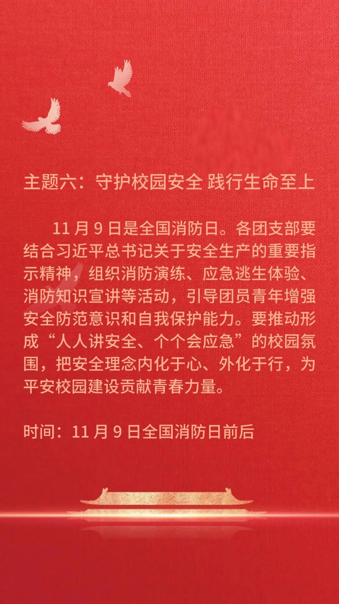 深入贯彻习近平总书记在同团中央新一届领导班子集体谈话时的重要讲话精神,巩固深化团员和青年主题教育成果,赋能基层团支部、激活“三会两制一课”,指导我校各基层团组织紧扣党的中心任务,围绕党和国家重大战略,结合重要时间节点,分领域组织化开展主题团日,动员引领广大团员青年争当“五个模范”、做到“五个带头”,在强国建设、民族复兴伟业中勇当先锋队、突击队,为实现高质量发展持续注入青春力量。