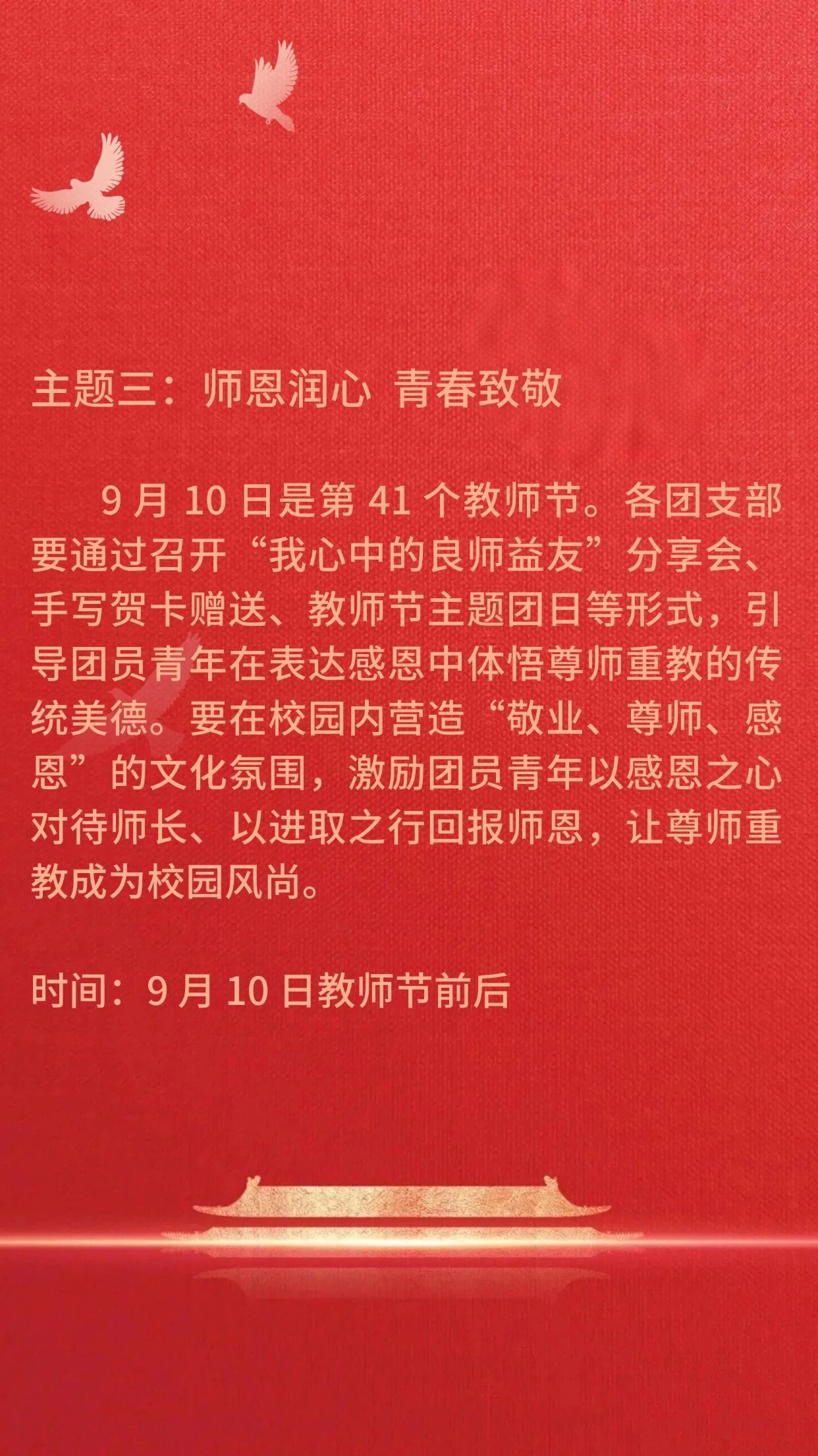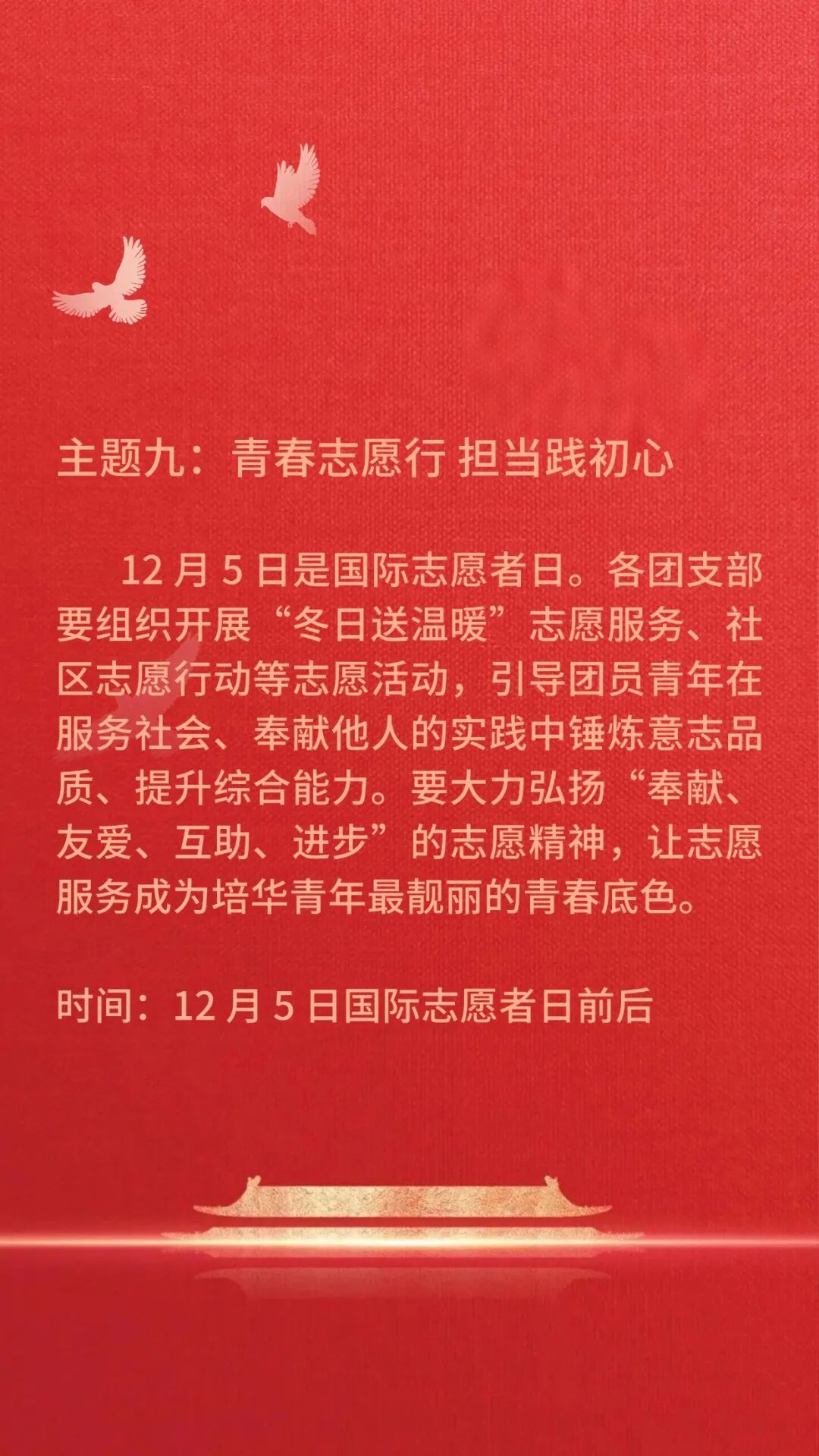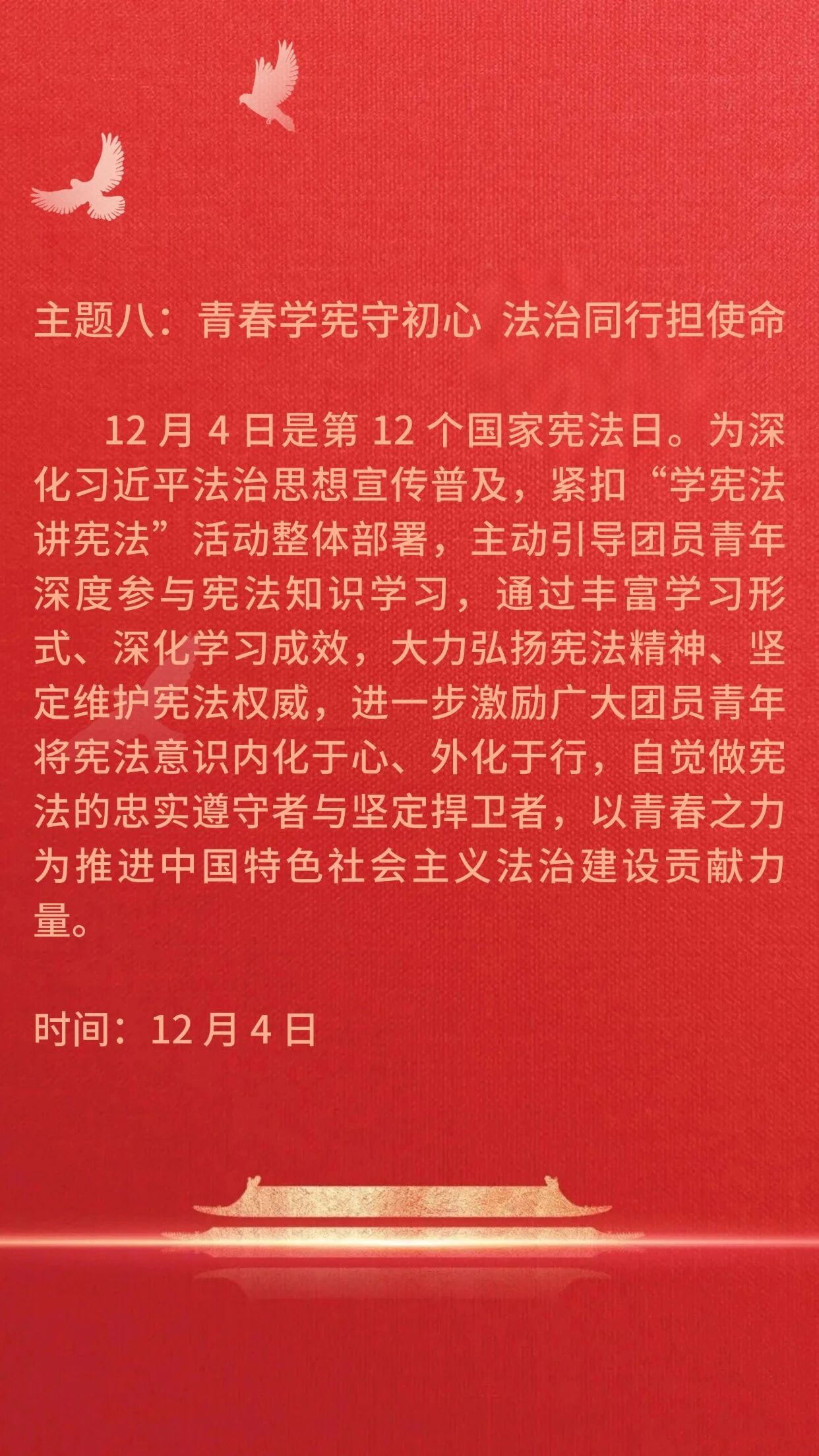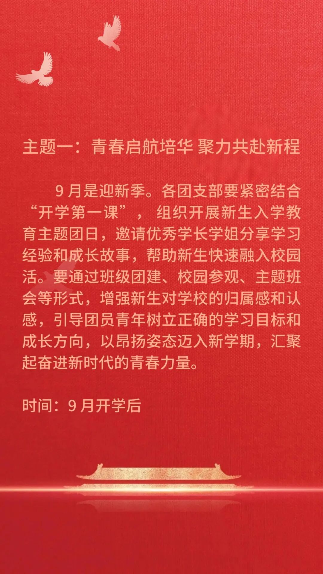 深入贯彻习近平总书记在同团中央新一届领导班子集体谈话时的重要讲话精神,巩固深化团员和青年主题教育成果,赋能基层团支部、激活“三会两制一课”,指导我校各基层团组织紧扣党的中心任务,围绕党和国家重大战略,结合重要时间节点,分领域组织化开展主题团日,动员引领广大团员青年争当“五个模范”、做到“五个带头”,在强国建设、民族复兴伟业中勇当先锋队、突击队,为实现高质量发展持续注入青春力量。