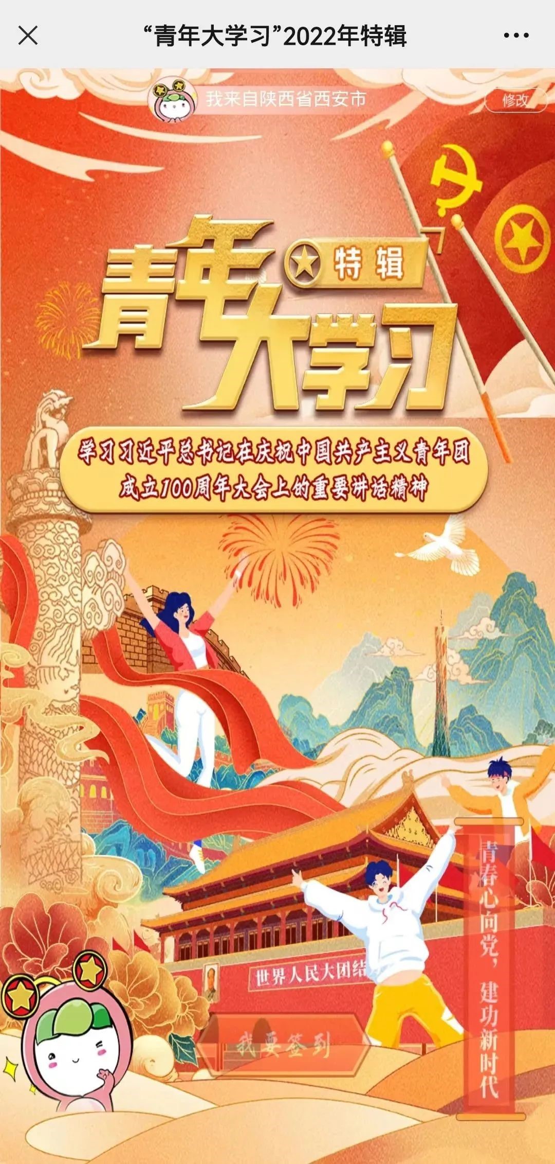 2022年5月10日,庆祝中国共产主义青年团成立100周年大会在北京人民大会堂隆重举行,习近平总书记出席大会并发表了重要讲话。总书记的重要讲话,全面回顾了100年来共青团坚定不移听党话、跟党走的青春历程,充分肯定了共青团在党的领导下、团结带领一代代团员青年为实现中华民族伟大复兴中国梦所作出的重要贡献,深刻阐明了共青团和青年工作的历史经验,对做好新时代共青团工作提出明确要求,具有很强的政治性、思想性、战略性、指导性,为新时代中国青年运动和青年工作指明了前进方向、提供了根本遵循,是新时代党的青年工作的纲领性文献。