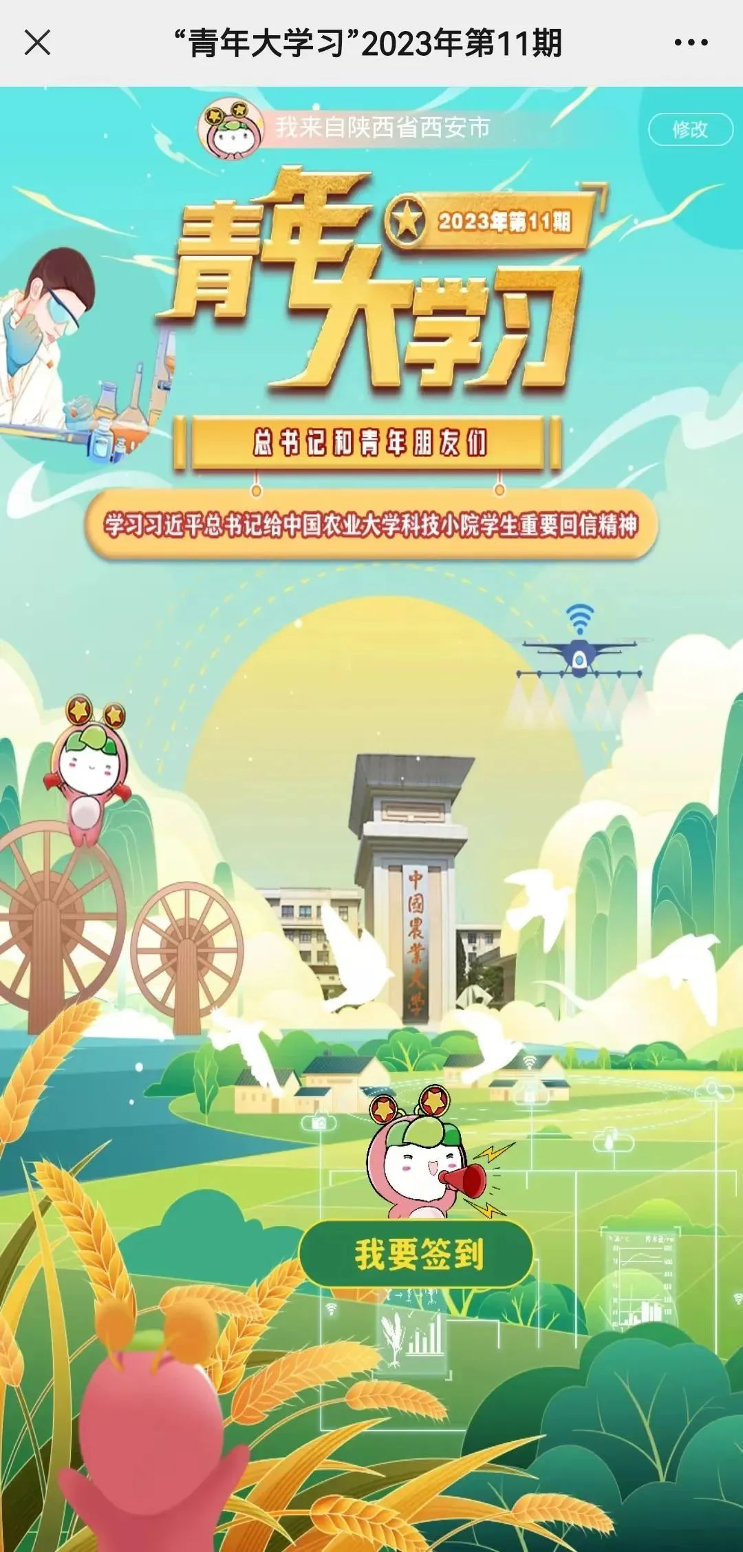 党的十八大以来,以习近平同志为核心的党中央从党的事业薪火相传、后继有人的战略高度出发,对青年一代无限关怀、对青年工作高度重视,全方位加强党对青年工作的领导,推动新时代青年工作取得历史性成就、发生历史性变革,特别是每逢五四,习近平总书记都会向青年致以节日问候、寄予殷殷嘱托。今年五四青年节前夕,习近平总书记给中国农业大学科技小院学生回信,强调“党的二十大对建设农业强国作出部署,希望同学们志存高远、脚踏实地,把课堂学习和乡村实践紧密结合起来,厚植爱农情怀,练就兴农本领,在乡村振兴的大舞台上建功立业,为加快推进农业农村现代化、全面建设社会主义现代化国家贡献青春力量。”总书记的回信极大鼓舞和振奋了全国广大青年和青年工作者,为引导青年投身乡村振兴、建设农业强国指明了前进方向、提供了根本遵循。本期青年大学习,我们来到中国农业大学,一起学习领悟习近平总书记的关怀勉励和殷切期望!