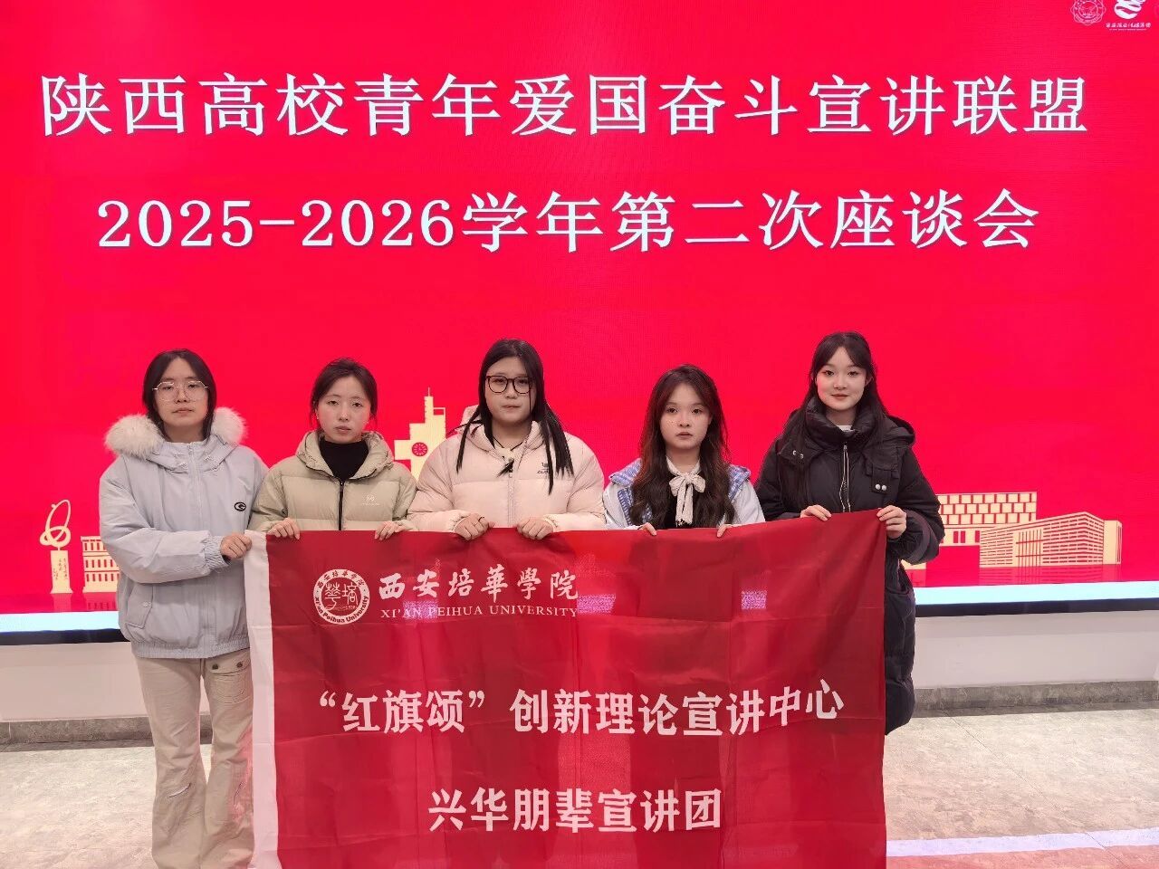 凝聚校园文化底蕴,汇聚联盟合作力量。2025年12月19日,西安培华学院兴华朋辈宣讲团受邀前往西安电子科技大学参加“文博薪火·青春宣讲——走进高校博物馆(西电站)”活动。陕西高校青年爱国奋斗宣讲联盟的多所高校宣讲团代表齐聚一堂,共同探讨宣讲团的发展方向,庆祝陕西高校青年爱国奋斗宣讲联盟成立五周年。