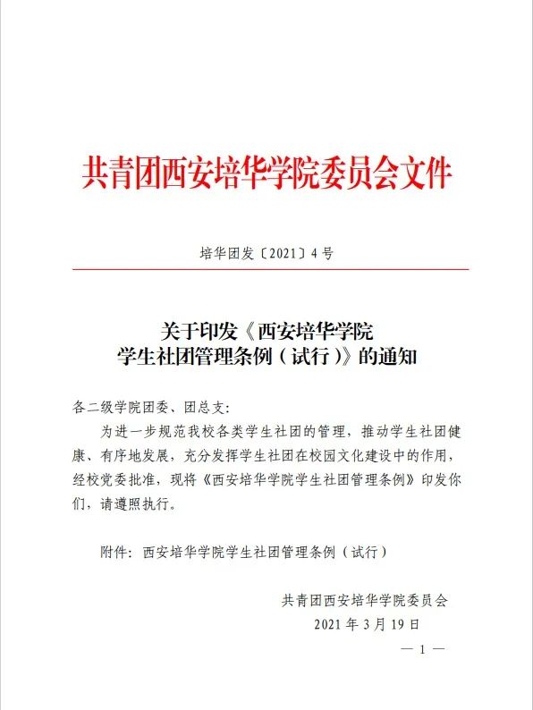 落实《高校学生社团建设管理办法》,加强西安培华学院社团整体发展,提高社团质量。