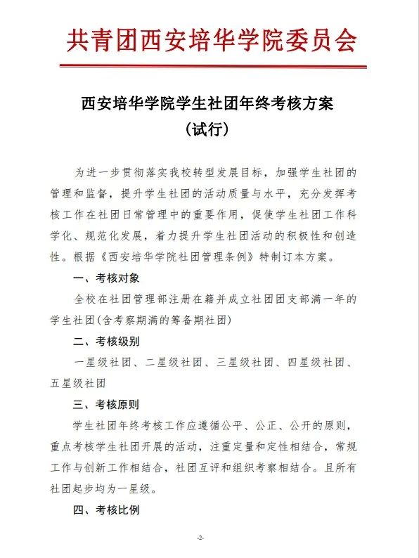 印发《西安培华学院社团管理办法》。同时修订了《西安培华学院社团管理实施细则》、《西安培华学院社团团组织条例》《西安培华学院社团星级评定》等文件,进一步推动社团发展科学化、规范化。