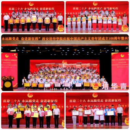 2022年西安培华学院“喜迎二十大 永远跟党走 奋进新征程”庆祝建团100周年暨五四共青团表彰大会顺利举行,表彰了过去一年在团学工作、社会实践、志愿服务、奖学金当面取得突出成绩的集体、组织、项目和个人,大会的举行增强团学工作的“仪式感 体验感 获得感”,引导全体培华青年凝心聚力,奋进前行。