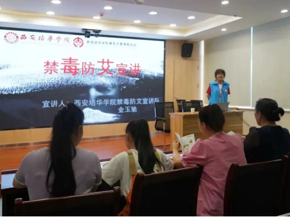 西安培华学院禁毒防艾宣传队依托青年志愿者联合会,多年来坚持不间断开展青少年禁毒宣传等公益活动,在校团委的指导下,组织校内优秀青年担任禁毒志愿者,联合陕西省疾控中心、西安市禁毒委、长安区皮防所、长安区禁毒办等单位,发挥专业特长,结合“6·26”国际禁毒日、暑期三下乡社会实践和志愿服务文化节等,已经连续6年在学校内部、附近中小学开展关爱青年人、提供禁毒与艾滋病相关的知识普及服务,至今已深入西安市长安区、延安市安塞区、铜川市等多地开展暑期三下乡实践活动与调研活动,访问校内外人员20000余人次,禁毒宣传实践活动受到群众一致好评。
