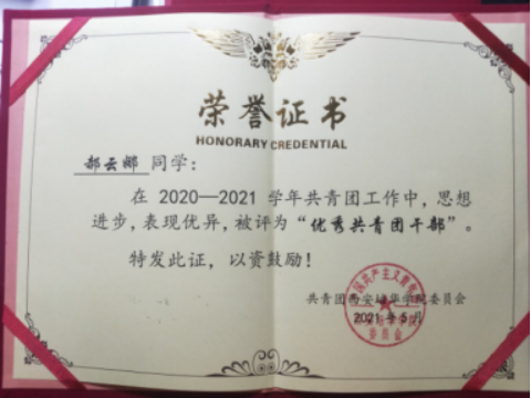 在本团支部所有成员的共同努力下,共荣获了“姜维之优秀创建班”和“先进团支部”等集体荣誉。团支部成员在学业繁忙之余也积极参加各类实践活动和学习竞赛,利用碎片时间丰富自身的学习时光。譬如在全国大学生英语竞赛、全国高等教师技能大赛、全国英语写作大赛当中,都有同学荣获一二三等奖的优异成绩,还有部分同学虽然没有得到奖项,但是也积极参与竞赛,为自身也为班级增添荣誉,这些都是英语1906团支部凝聚力和荣誉心的体现。