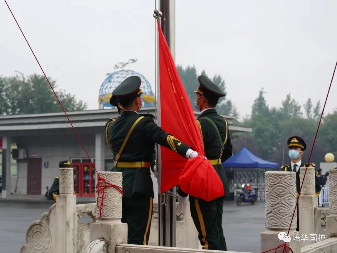 在观看直播结束后,队员们伴随着清晨的蒙蒙细雨,在升旗场地准备就绪,目光如炬,脚步坚定有力,我们高唱国歌,眼里尽是五角星的星光,我们用我们的最高礼仪贺祖国华诞,风雨无阻与祖国和人民一起,同升一面旗,共爱一个家,这一刻尽显青年的担当,民族的希望。