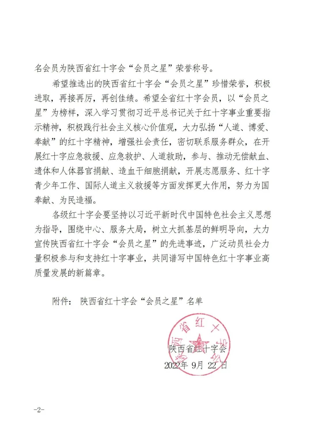 近日,陕西省红十字会“会员之星”推选活动揭晓,经过各级推选,陕西省共50名会员上榜,我校红十字学生分会干部陈妍妮名列其中。