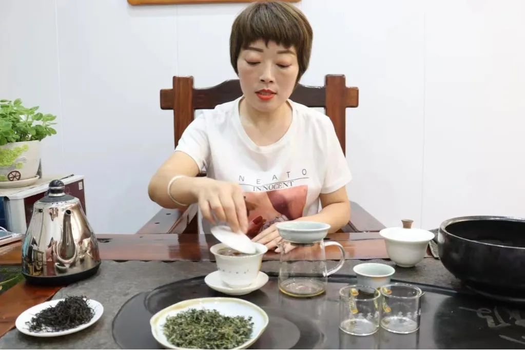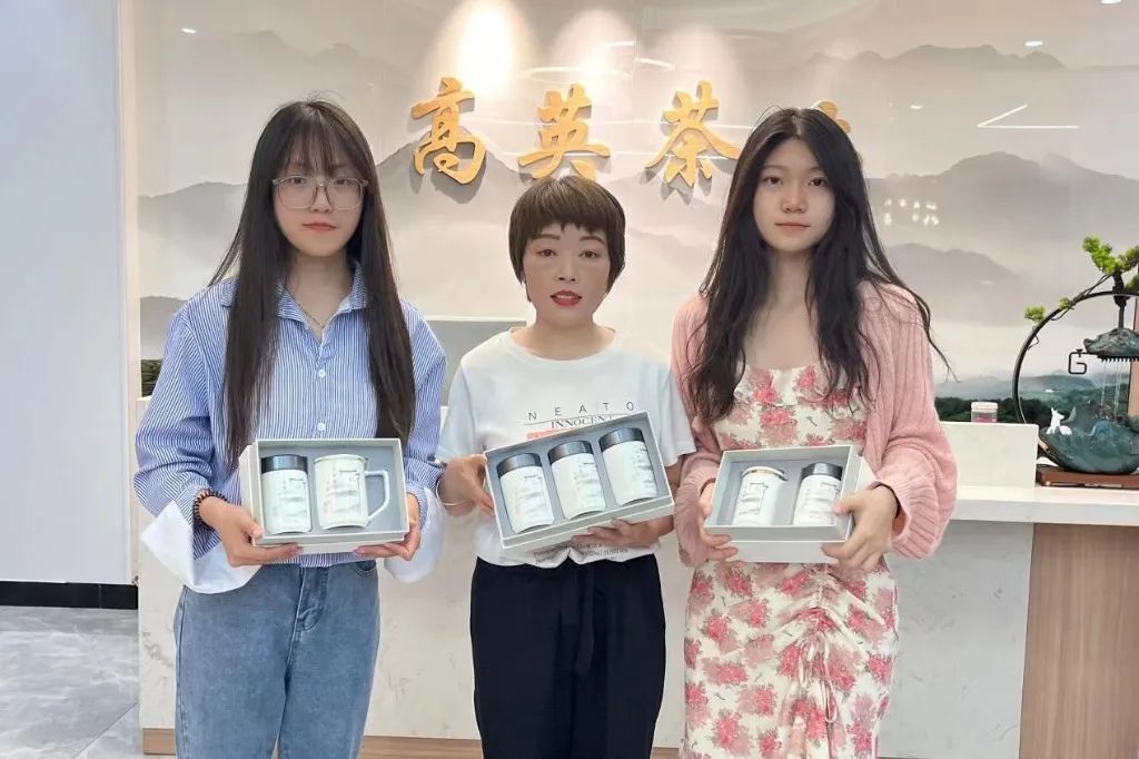 活动期间,实践队员受邀前往高英茶业参观学习。通过店员的交谈,我们了解到老板高英积极投身脱贫攻坚的故事,“树高千尺不能忘根,她是这样说的,也是这样做的。”同时,店员向我们介绍了制茶的工艺流程,并展示如何进行精制、包装。实践队员在此进行直播带货,帮助流量变现,并拍摄宣传图片,进一步扩大宣传力度。
