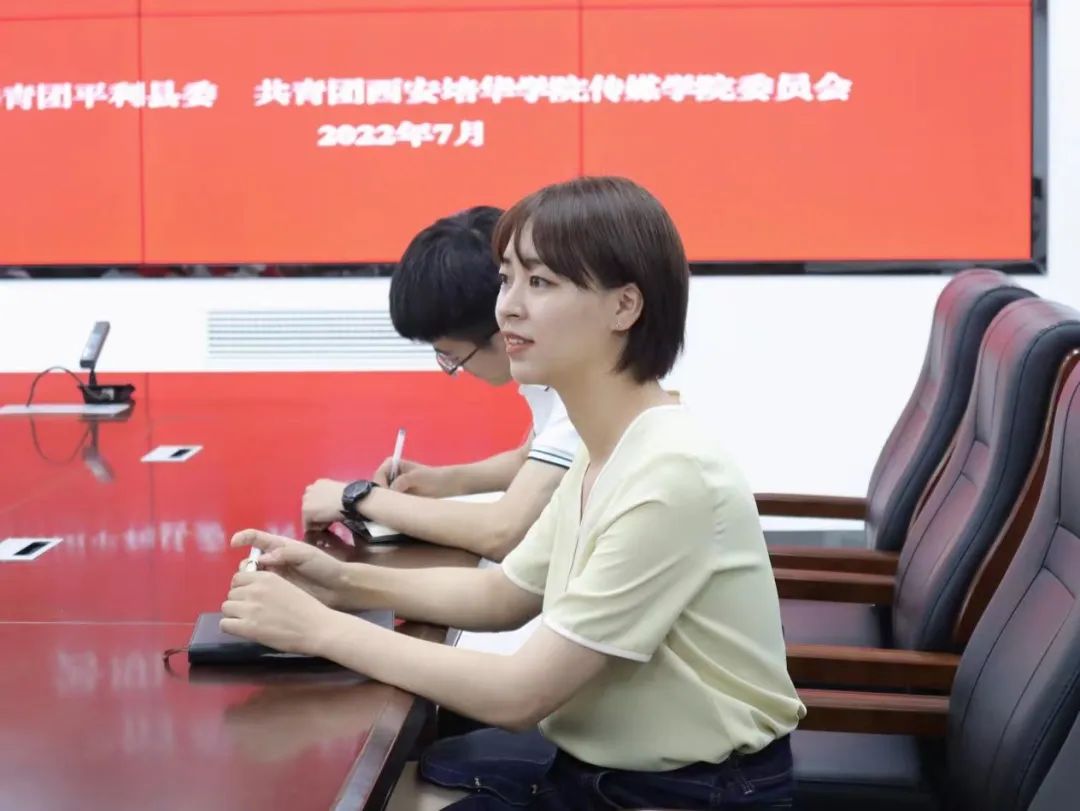 实践队员在活动期间走访多个相关单位。于7月8日下午与共青团平利县委展开了深入交流,在谈话中,传媒学院团委书记王雅璇提出,可以集合学校各个专业中优秀的学生,组成一支综合的专业志愿队,助力平利县高质量发展。共青团平利县委书记刘凡也表示,希望与共青团西安培华学院形成长期对接的合作关系,加强平利与高校的深层次合作,并全面支持学生暑期“三下乡”活动的开展,共同推动平利更快更好的发展。