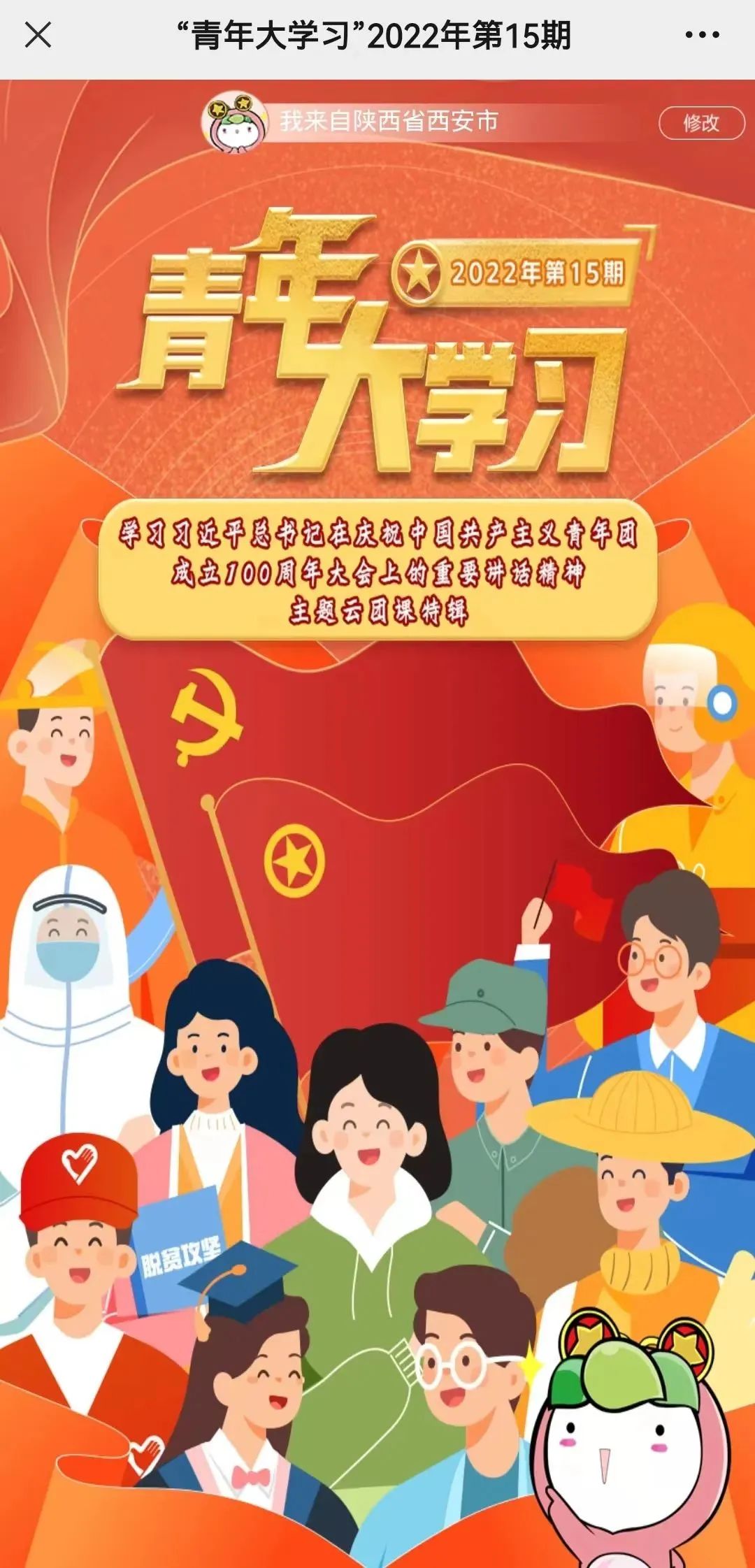 今天,我们就一起来学习“青春心向党 百年再启航——学习习近平总书记在庆祝中国共产主义青年团成立100周年大会上的重要讲话精神”主题云团课特辑,遵循习近平总书记的谆谆教导,牢记习近平总书记的殷殷期望,努力成长为有理想、敢担当、能吃苦、肯奋斗的新时代好青年,用奋斗践行“请党放心、强国有我”的青春誓言,不负时代,不负韶华,不负党和人民的殷切期望!