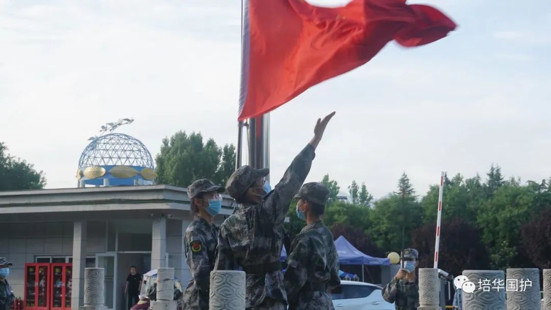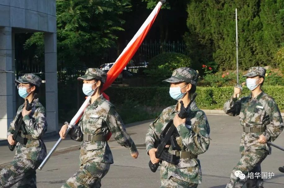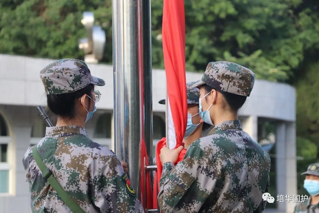 清晨的校园带着些许朦胧,初升的太阳唤醒了沉寂的校园。手中的这面旗也被照耀得更加灿烂、夺目,而队员们身着绿色戎装,坚定的眼神、挺拔的身姿、不屈的信念,面对高温,无所畏惧、蓄势待发,共同迎接这个崭新的周一。