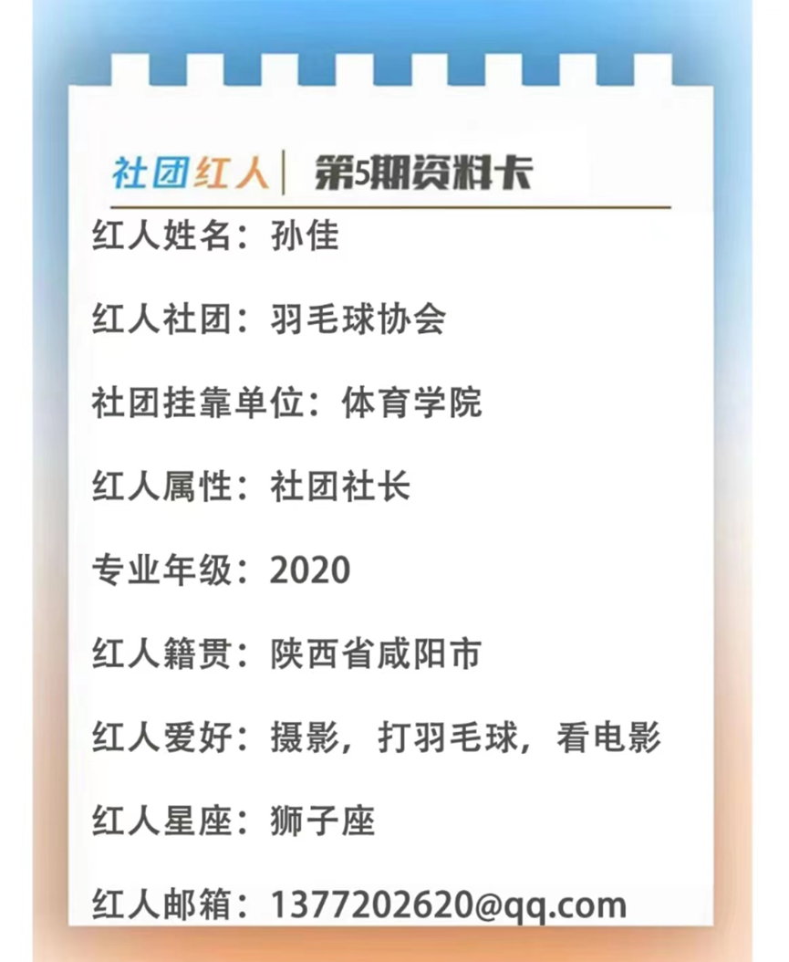 社团红人,又双叒叕来啦!这次是“羽”众不同社长先来get本期的红人信息卡吧!