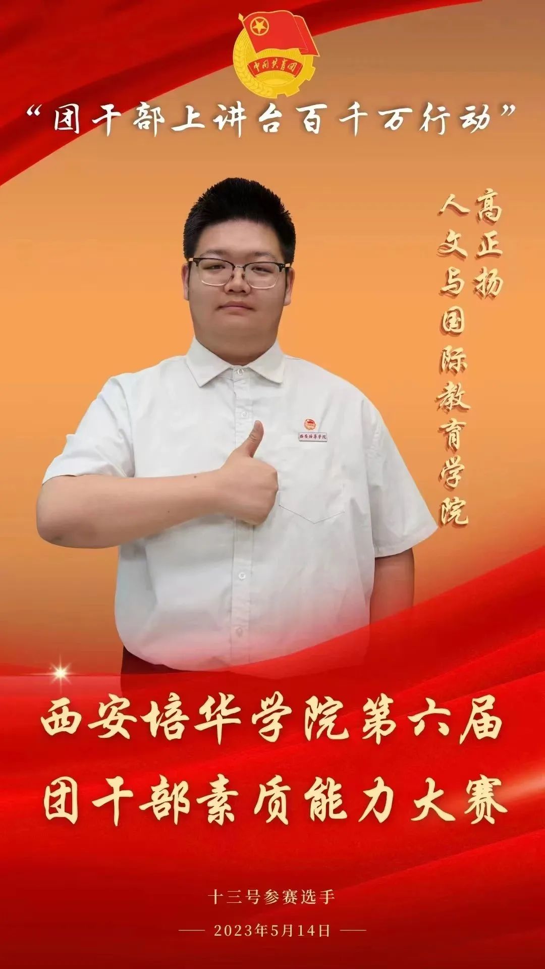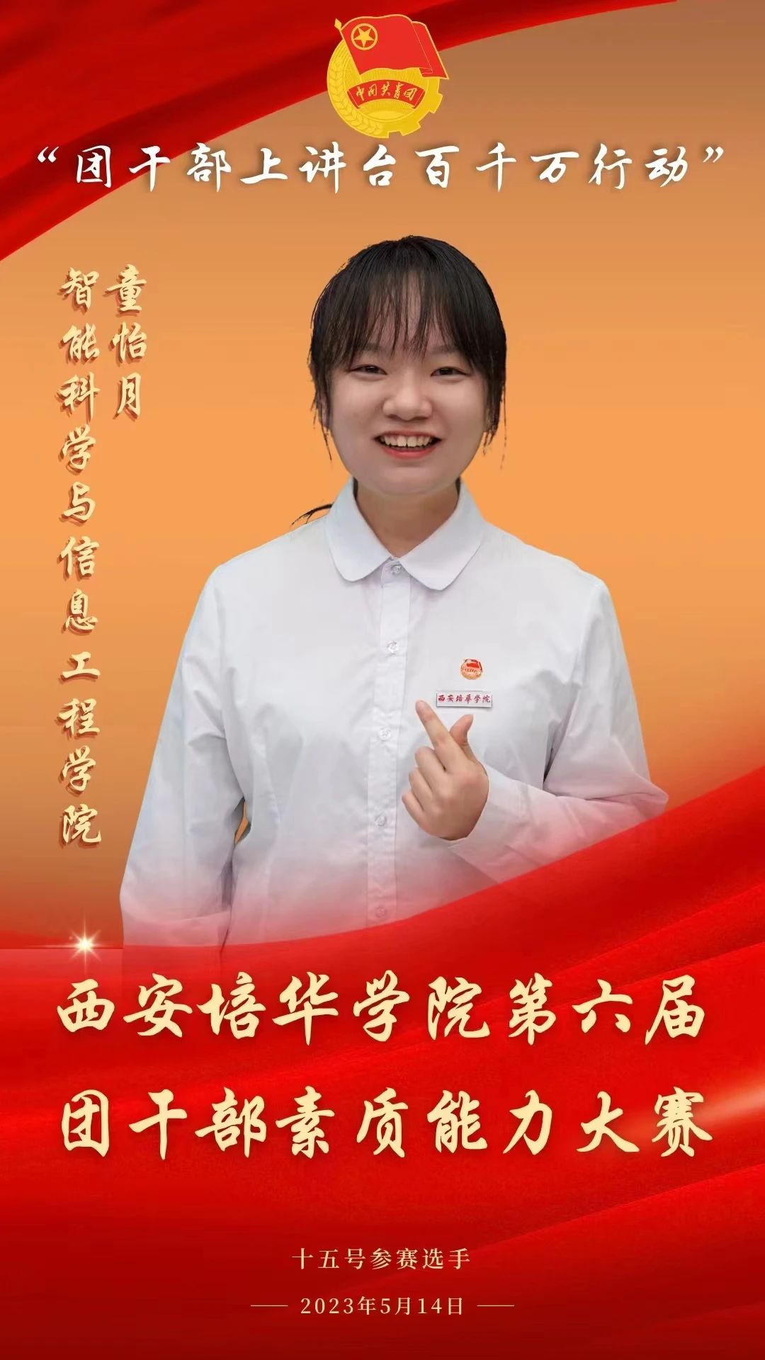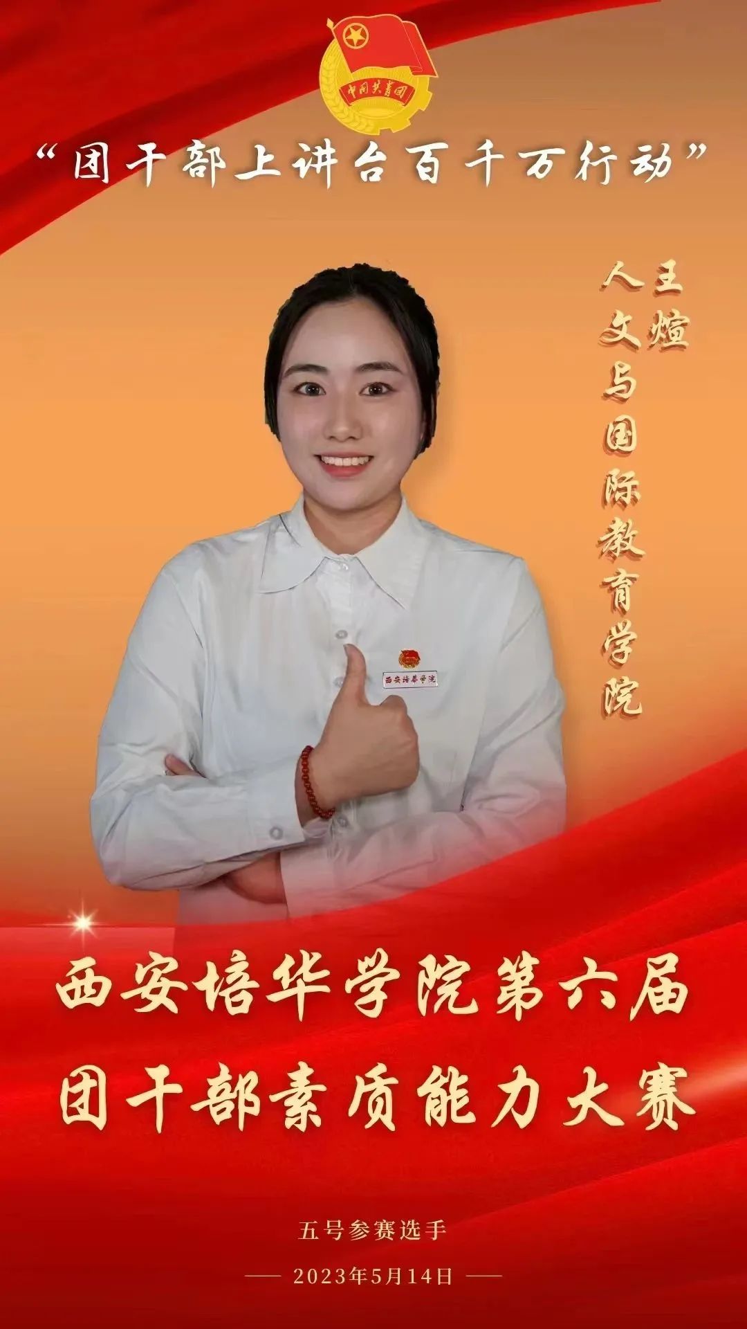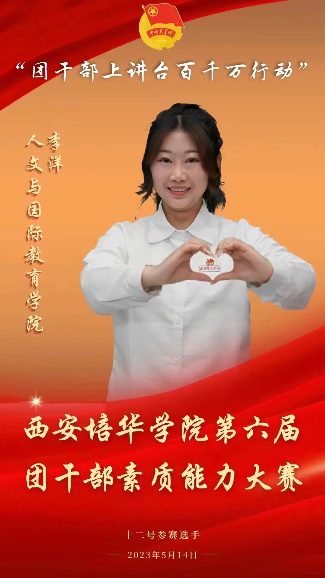 “学习二十大 永远跟党走 奋进新征程”西安培华学院第六届团干部素质大赛决赛将于今日(5月14日)14:00在图书馆报告厅举行,让我们一起期待以上选手在决赛现场的精彩表现!