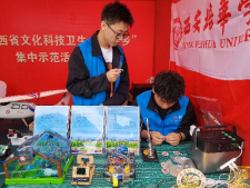 智能科学与信息工程学院“蒲公英”科普志愿服务队与我校创客中心共同参展,在陕西省科协“三下乡”科普知识下基层活动的统一部署和陕西省科普宣传教育中心指导下,通过固定展位为现场观众带来3D设计打印作品、电子设计作品与SMT生产技术样品、自然科学DIY等科普展示或科技体验项目,并现场提供电子焊接DIY活动,为活动现场驻足的观众赠送培华学子自行设计并焊接的培华校徽,吸引诸多观众观摩交流。