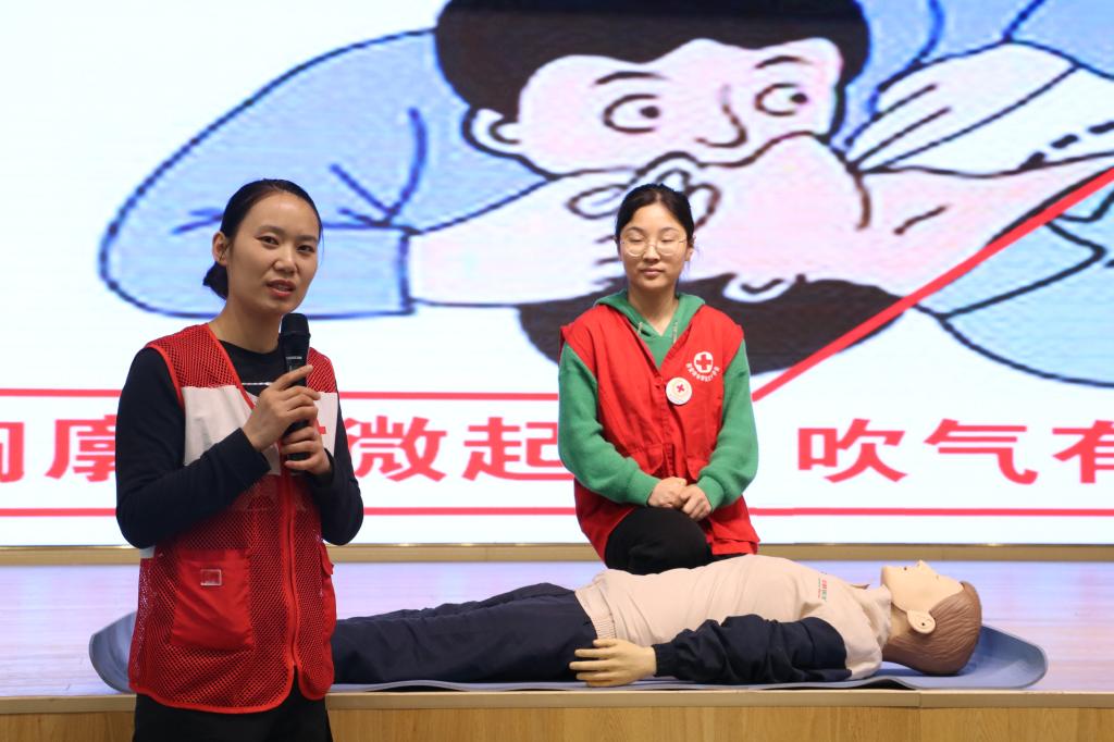 在总会的精神带领下,我校高度重视应急救护工作,在学校理事会和学校党政领导的大力支持下,红十字会学生分会结合“5·8红十字博爱周”、5·12国家防灾减灾日”、“11·9消防宣传日”、“国际减灾日”、暑期三下乡社会实践等,每年积极开展应急救护系列教育活动:如“血车进校园”、造血干细胞捐献、应急救援培训、防灾减灾救灾知识宣讲等活动;学校每年都邀请应急救援专家到校开展“应急救护进校园、进寝室”系列培训活动,近三年共计开办救护员培训班6期,新增持证红十字救护员200余人;红十字会学生分会连续7年深入学校、社区、养老院等地基本急救知识、技能的普及服务,近年来开展救护普及培训达80余场次,受益人群达9000余人;线上应急救护知识培训,观看人数已超过6000人次。