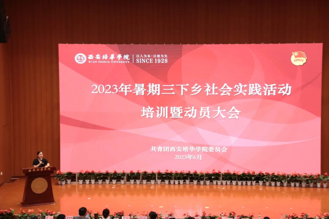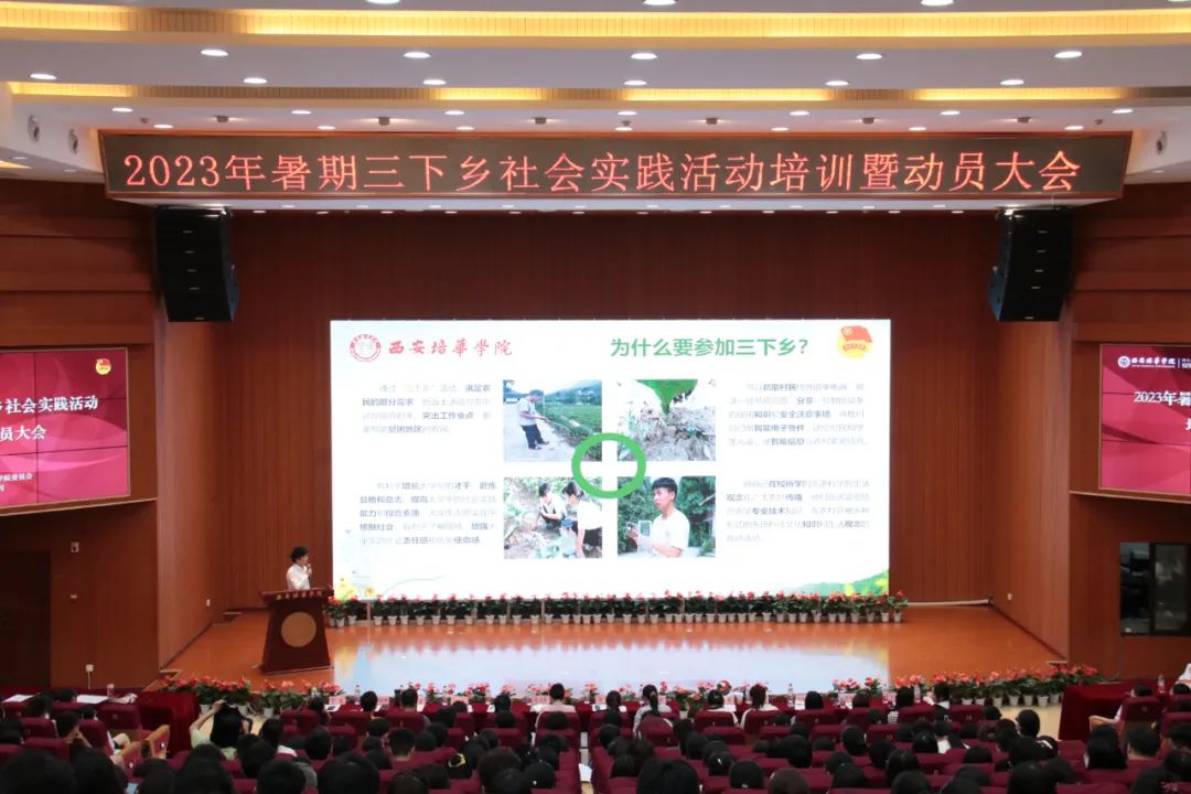 为进一步加强我校广大青年学子对暑期“三下乡”社会实践活动的了解,激发参与热情,高质量推进我校暑期社会实践活动工作开展,助力我校青年在暑期社会实践活动中“受教育、长才干、作贡献”,西安培华学院2023年暑期“三下乡”社会实践培训暨动员大会于2023年6月20日18:30,在维之图书馆报告厅召开。