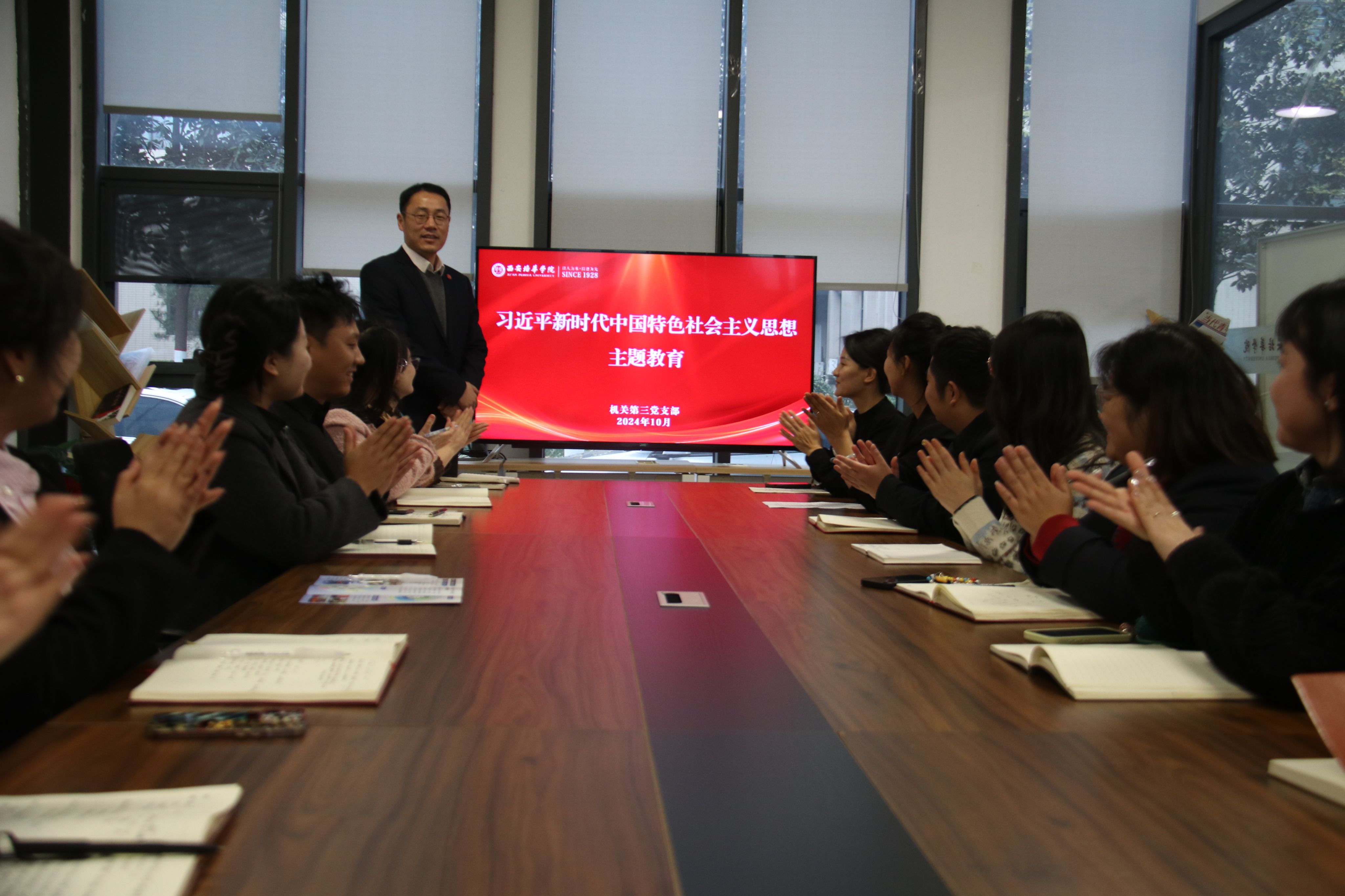 2024年10月28日,为深入学习贯彻习近平总书记关于全面深化改革的一系列新思想、新观点、新论断,准确把握二十届三中全会精神实质,机关第三党支部开展“习近平新时代中国特色社会主义思想”主题学习教育,机关第三党支部教师代表出席学习会议。