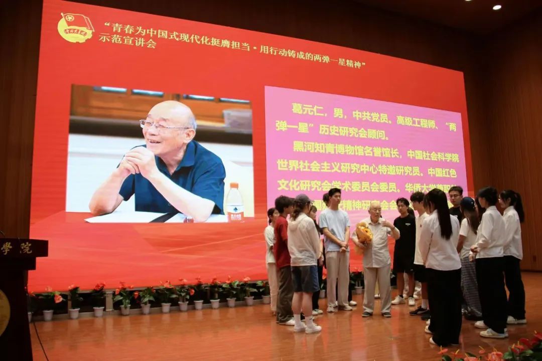 为深化爱国主义教育,引领培华青年体悟“两弹一星”精神的时代伟力,厚植家国情怀、勇担时代使命,共青团西安培华学院委员会于5月20日16点30分于维之图书馆报告厅举办“青春为中国式现代化挺膺担当·用行动铸就的两弹一星精神”示范宣讲会。活动特邀“两弹一星”元勋之子葛元仁老师解读其精神内核,为师生带来一场深受感悟的盛宴。