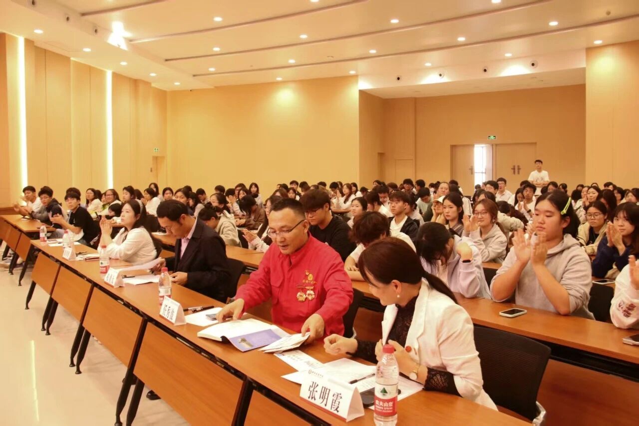 三百余名师生齐聚一堂,学生服务中心主任、党委学生工作部部长权勇太,马克思主义学院形势与政策教研室主任张明霞,党委工作部统战秘书陈博雅出席活动,校团委书记董莹主持活动。