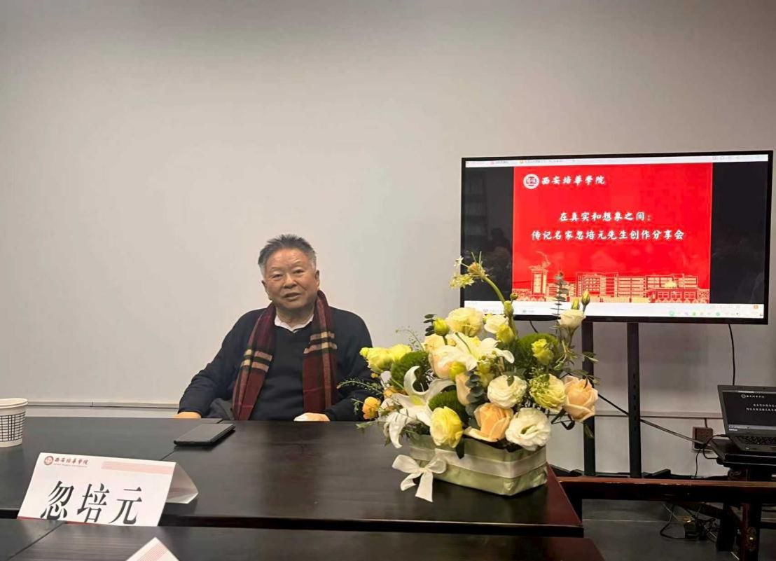 为深化教学改革,提升学生非虚构写作核心能力,2025年12月24日上午10:00至12:00,大学写作课程组在汇知楼国学馆举办了传记名家忽培元先生创作经验分享会,丰富了课程的教学模式,为学生带来了沉浸式、实战型的写作学习体验。大学写作课程组赵静老师、忽培元苍生《三部曲》研究中心秘书李雅楠老师、2025级汉语言文学11班的同学及非虚构写作爱好者参与了此次活动。
