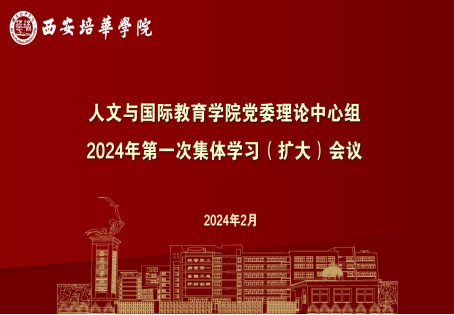 2024年2月23日,人文与国际教育学院党委在格物楼第四会议室召开了院党委中心组学习(扩大)会议,共同学习了《习近平在纪念毛泽东同志诞辰130周年座谈会上的讲话精神》、《习近平:思政课是落实立德树人根本任务的关键课程》、《中央经济工作会议精神》以及《中共陕西省委十四届五次全会暨省委经济工作会议精神》等内容,并结合我院实际开展交流研讨。