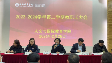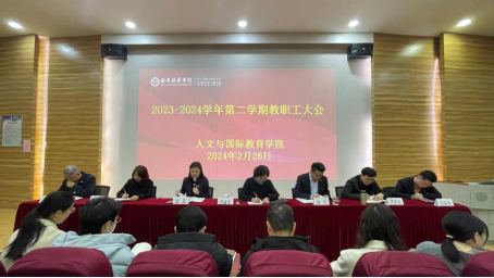 为确保新学期开学工作平稳有序,人文与国际教育学院于2月26日下午16点在格物楼J101教室召开了2023-2024学年第二学期教职工大会。出席会议的有西安培华学院学术委员会主席、副校长、人文与国际教育学院院长刘越莲教授、学院领导班子全体成员、全体教职工。会议由学院常务副院长梁蕊主持。