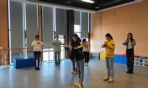 学前教育2106班的16名学生从2023年10月16日开始积极备赛。在不耽误上课的前提下,周老师和同学们克服重重困难,利用课间和周末休息时间争分夺秒刻苦训练。同学们在每次训练后都会录制视频,通过视频来反思自己。同时周老师每次都会反复观看练习视频,加以指导,细致打磨每一个细节动作和表情神态。从视频中可以观察到同学们的衣着变化,从穿短袖跳到了穿棉袄。可想而知,老师和同学们对比赛的重视。此外,从舞台道具到舞蹈服装再到舞台的整体呈现,都凝聚着大家大量的心血。经过师生共同努力,顺利通过层层选拔,最终在比赛中脱颖而出。