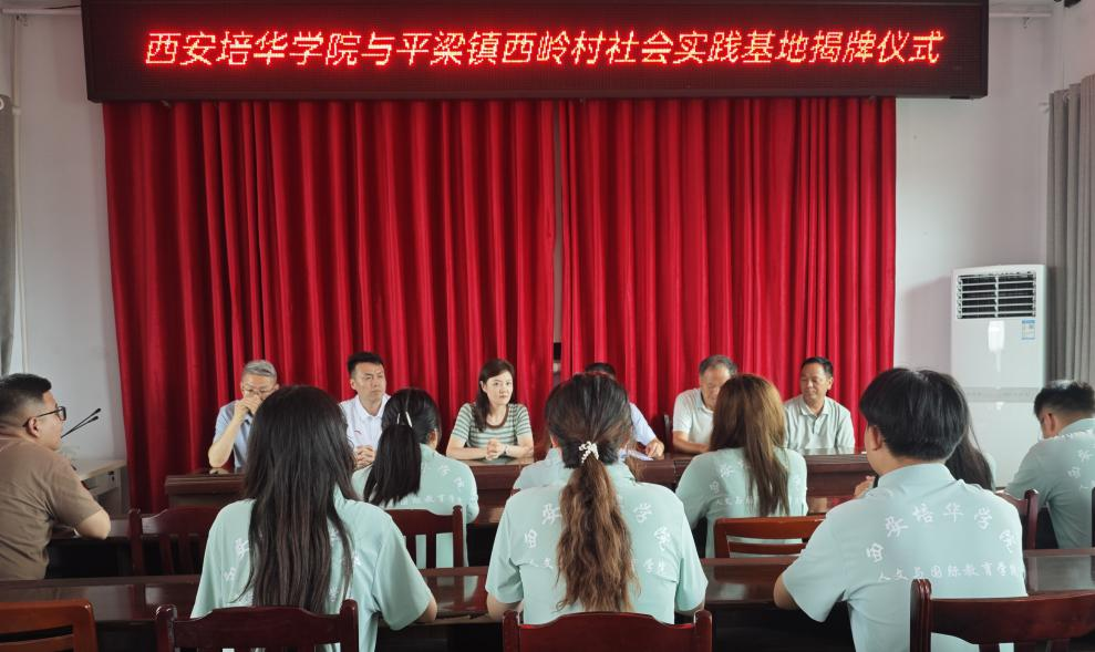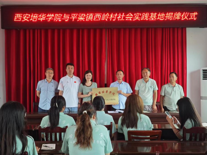 西安培华学院人文与国际教育学院梁蕊院长代表学校与西岭村宋静书记共同揭牌。此次揭牌仪式的举行,不仅是“红色解码者”—西柏坡精神宣讲团与西岭村工作紧密联合的体现,更是校地双方合作、共谋发展的重要成果体现。
