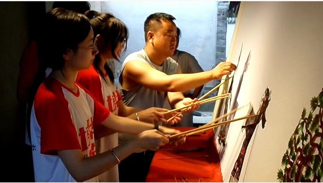 言艺传薪社会实践队队长将七天行程内容以及具体实施情况做了汇报并将指导老师南兵和李晶对共青团华阴市委员会的倾心接洽的感谢传达到位。并特别强调,好的工作开端将是接下来工作的重要基石,团队指导老师与三位书记以及各基层力量的关心是他们的幸运,亦是这几天工作能顺利开展中流砥柱的力量。本次三下乡活动主题是‘推普助力乡村振兴’,因为华阴非物质文化遗产丰富,更能与推普结合,我们想以某种方式为媒介,将华阴丰富非遗宣传出去,7月3日我们队伍前往双泉村,去采访了村支书和老支书,了解双泉文化和老腔、素鼓的渊源,队员再通过普通话进行报道,方言与普通话的碰撞展现华阴丰厚的文化底蕴。随后我们又在张先生的带领下了解皮影的渊源以及皮影制作,我们也进行了皮影表演,这次实操的活动为我们整个队伍留下深刻的记忆。