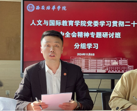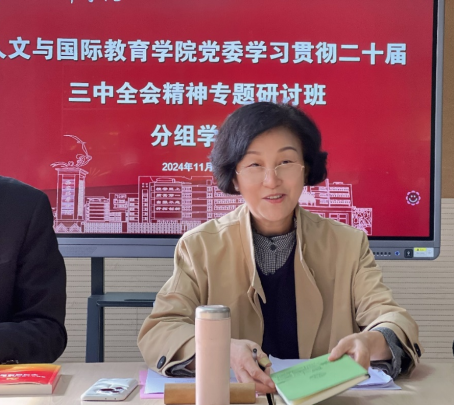 为深入学习贯彻党的二十届三中全会精神,人文与国际教育学院党委于11月6日、7日下午开展了学习贯彻二十届三中全会精神专题研讨班分组学习。