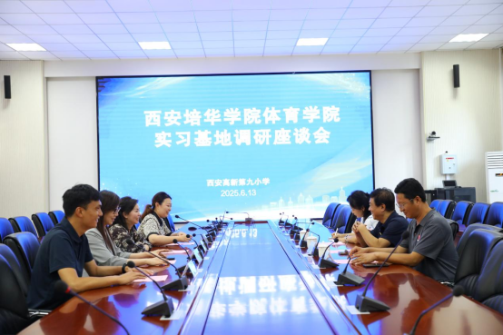 2025年6月13日,西安培华学院体育学院院长王志强、大学体育部部长刘利锋、雷耿华教授一行前往西安高新第九小学,与该校开展体育教育领域的访谈交流。高新第九小学党支部书记、校长洪霞,党支部副书记、副校长张焰,学生中心主任方丽捷,艺体中心主任陈茂等校方代表热情接待。